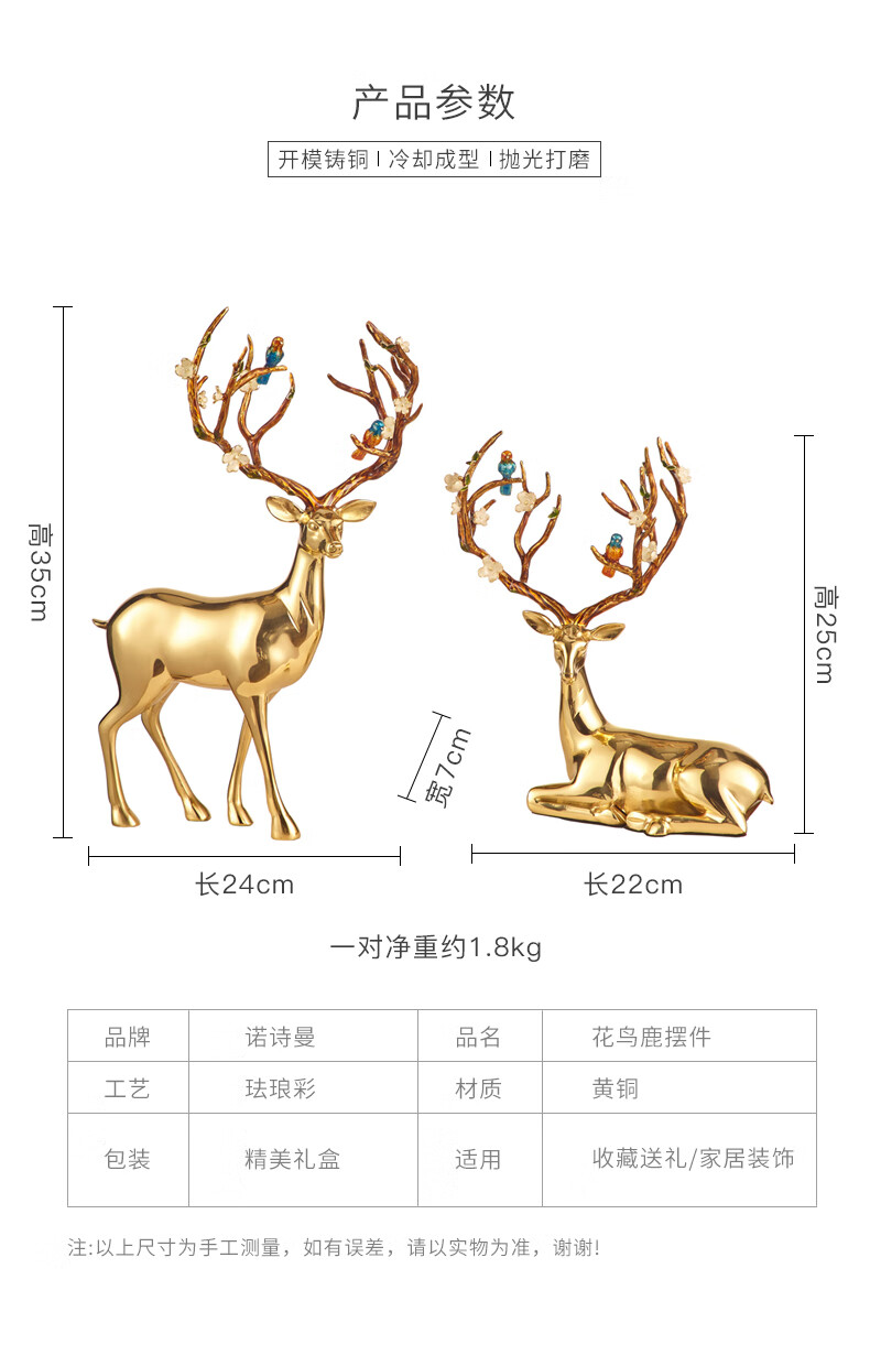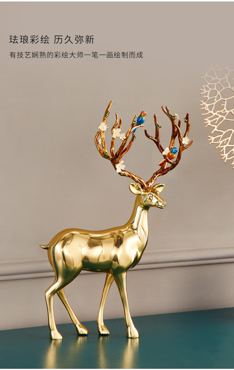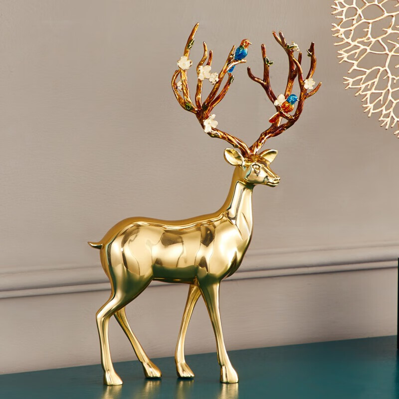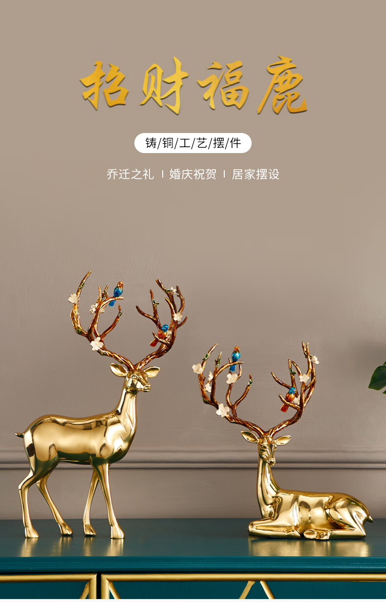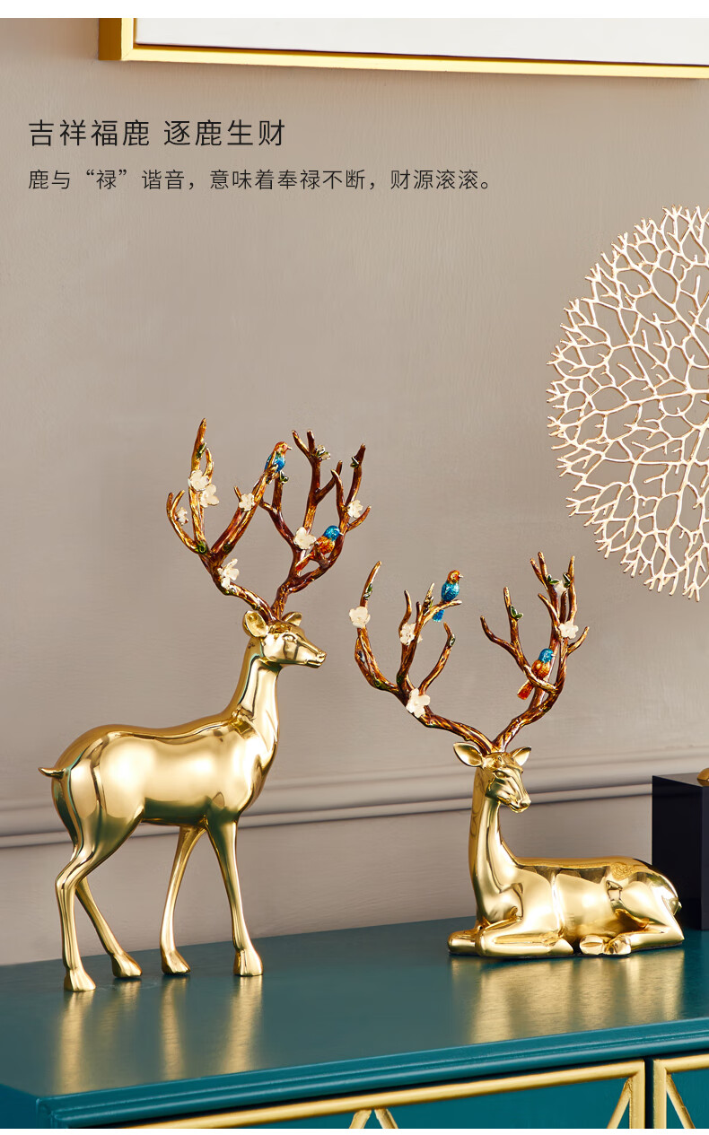 • 商品名称:诺诗曼一路相伴铜鹿摆件客厅酒柜装饰品电视柜乔迁搬新家结婚礼物送新人 铜花鸟鹿一对/对