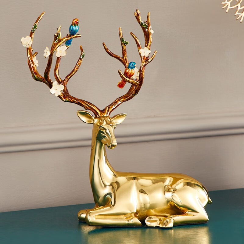 诺诗曼一路相伴铜鹿摆件客厅酒柜装饰品电视柜乔迁搬新家结婚礼物送新人 铜花鸟鹿一对/对