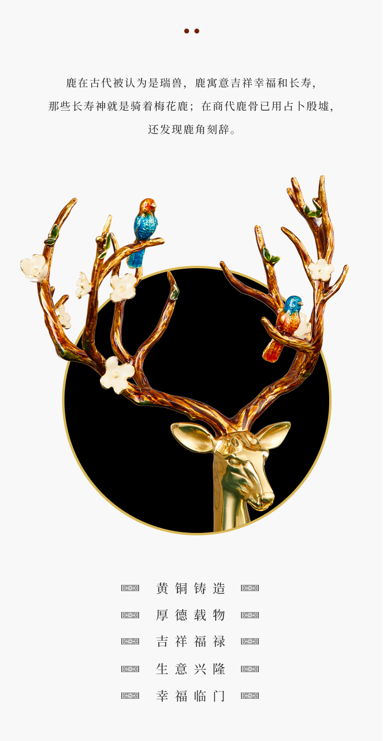 商品名称: 诺诗曼一路相伴铜鹿摆件客厅酒柜装饰品电视柜乔迁搬新家结婚礼物送新人 铜花鸟鹿一对/对