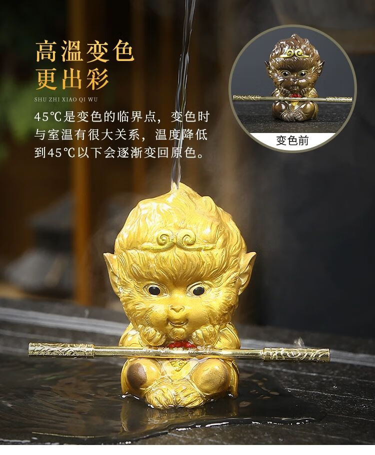 家居饰品  > 摆件  > 桌面摆件  >  靓厅  >  靓厅茶宠可养变色热水禅意礼物装饰品茶桌茶玩茶台摆件茶具配件 小号孙悟空变色茶宠+金箍棒+ 礼盒/个