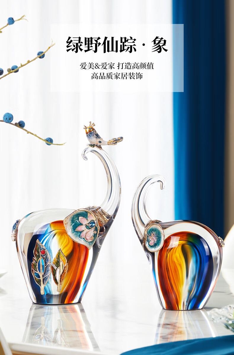 商品名称: 诺诗曼高端珐琅彩大象摆件工艺品一对客厅玄关电视酒柜装饰结婚乔迁礼物 轻奢大象摆件/对
