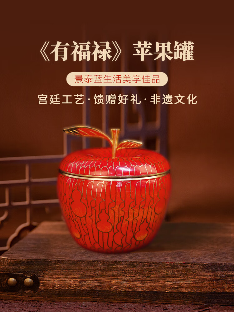 家居饰品  > 摆件  > 桌面摆件  >  中外珐琅美术馆/SINO-FOREIGN ENAMEL GALLERY  >  中外珐琅美术馆团圆平安福禄万代景泰蓝苹果罐 桌面摆件礼品生日礼物结婚圣诞节 有福禄绿苹果/个