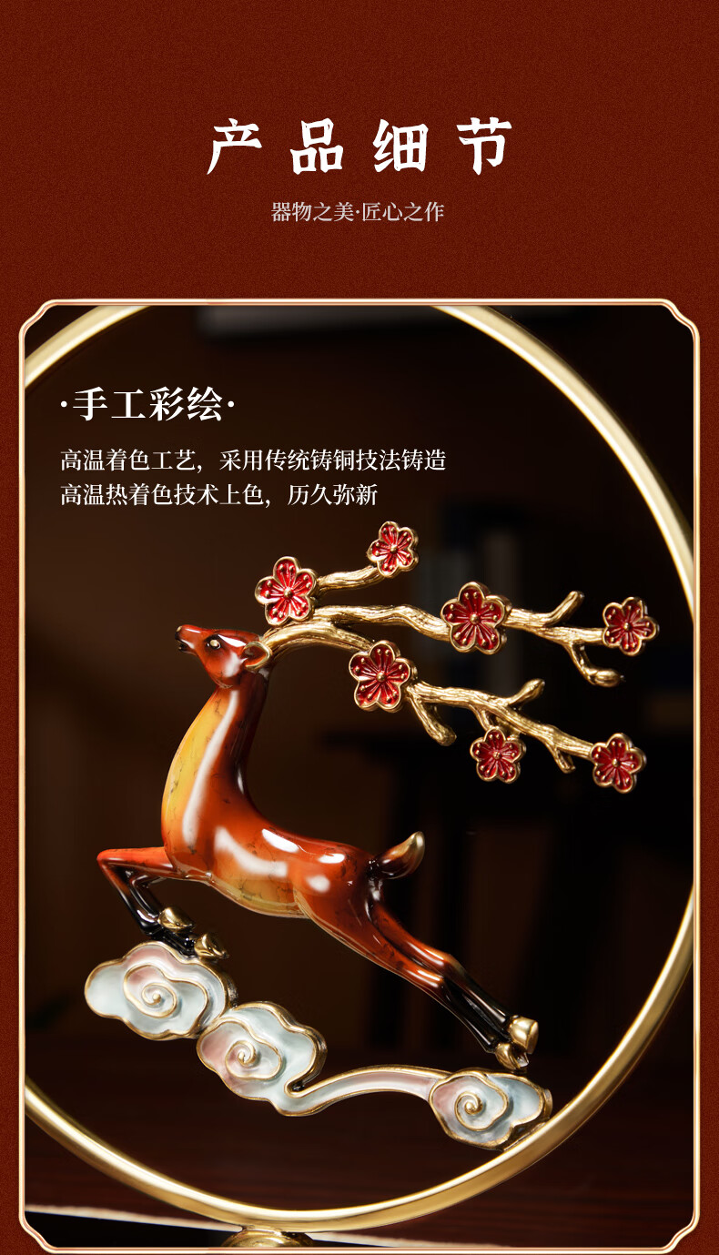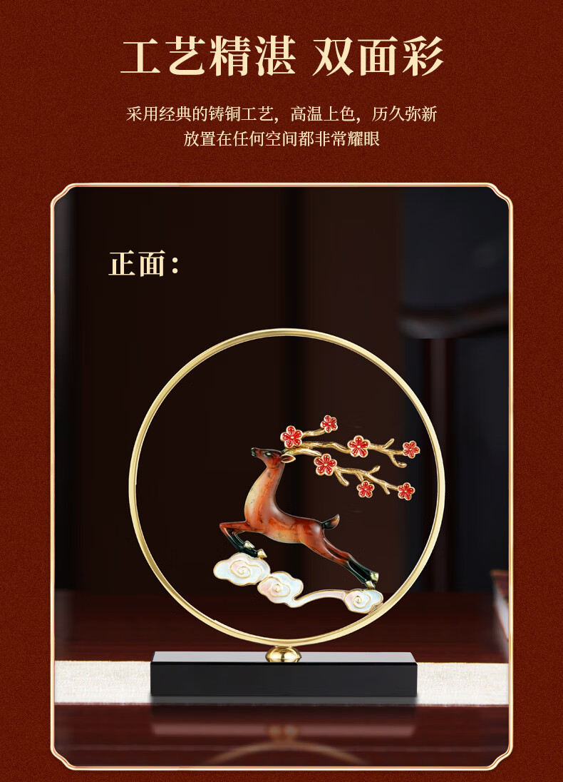 • 商品名称:诺诗曼铜鹿摆件办公室桌面客厅酒柜装饰乔迁新居礼物搬家开业退休纪念品 彩色麋鹿圆形摆件/个