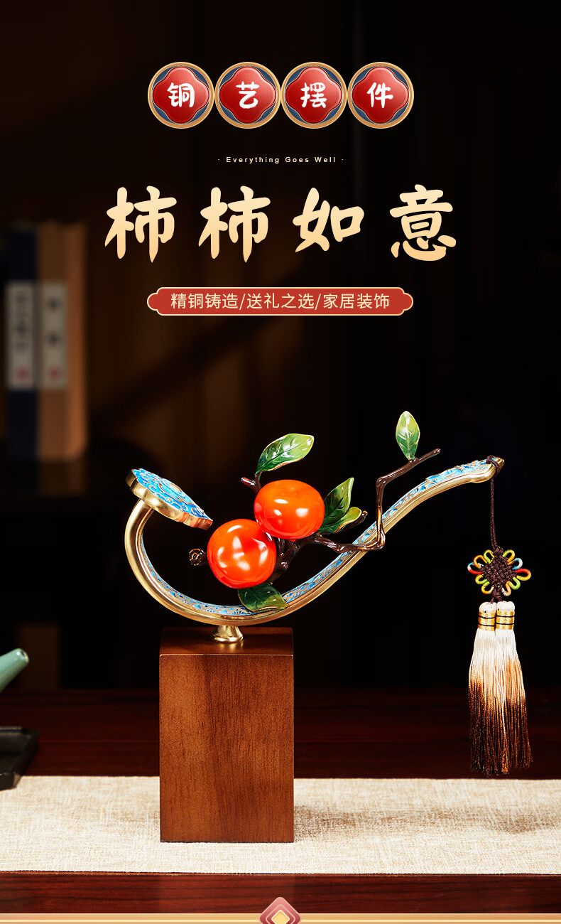 • 商品名称:诺诗曼柿柿如意摆件办公室客厅酒柜装饰乔迁开业礼物搬家新年会礼品纪念 事事如意柿子铜摆件/个