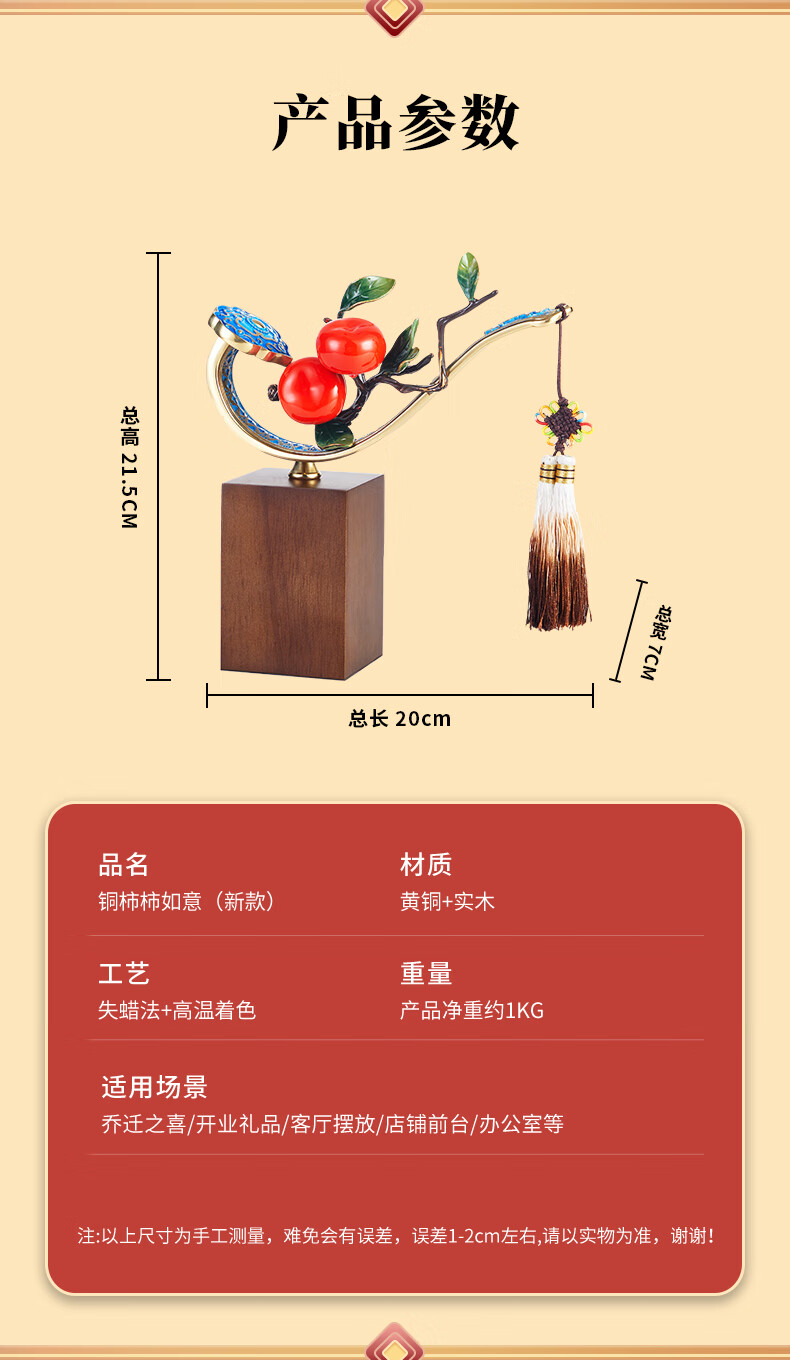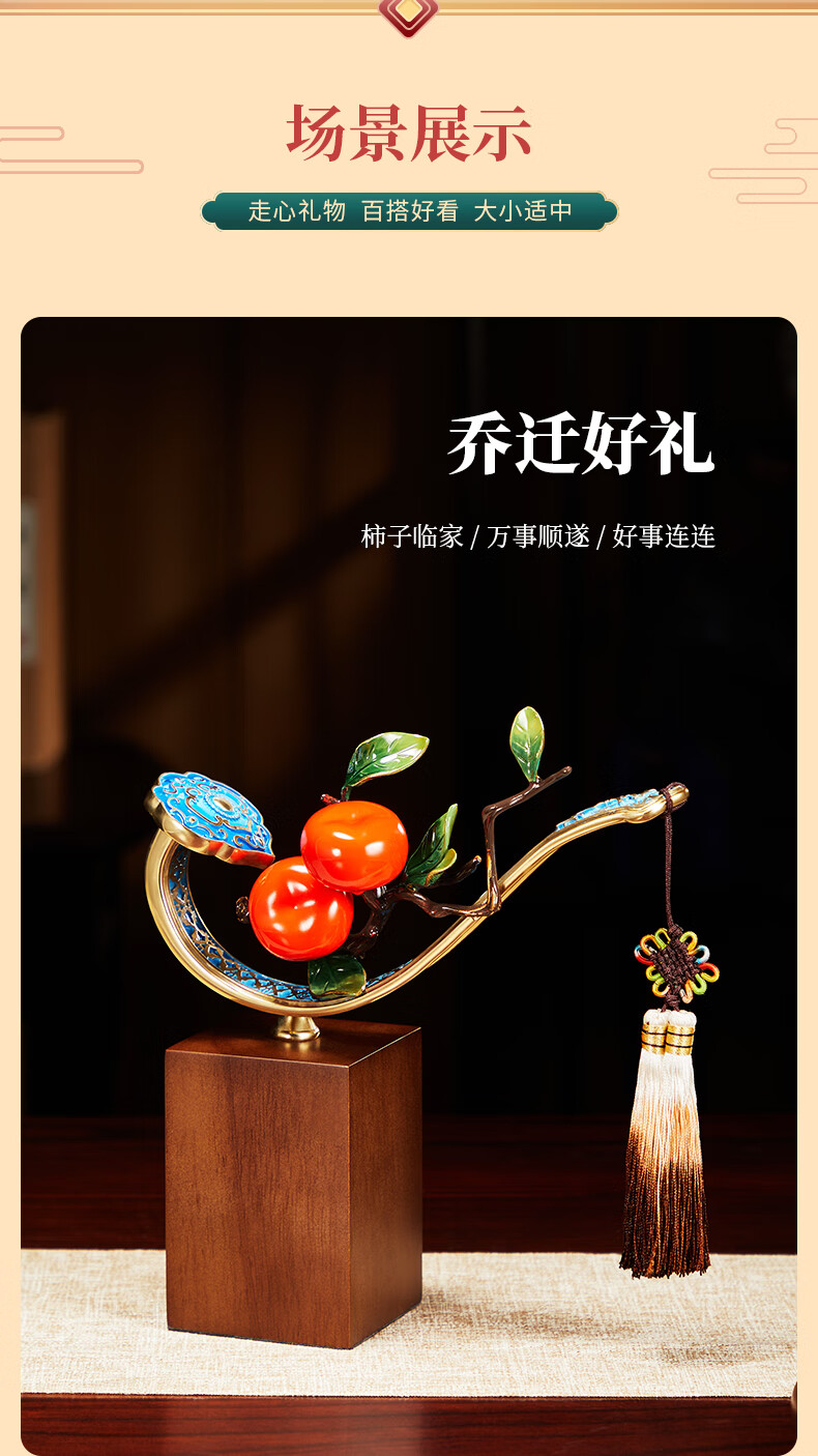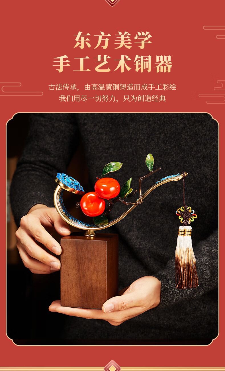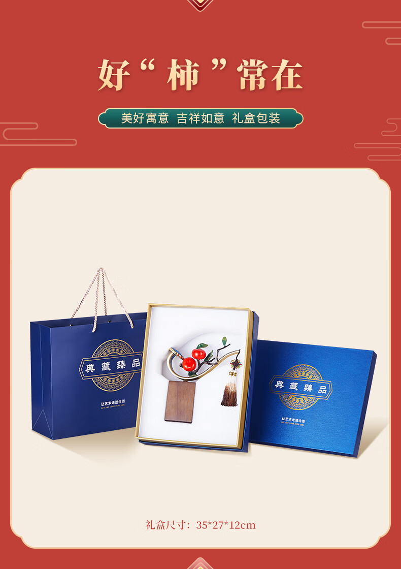 包装清单: 铜柿柿如意摆件(带流苏)+ 礼盒礼袋