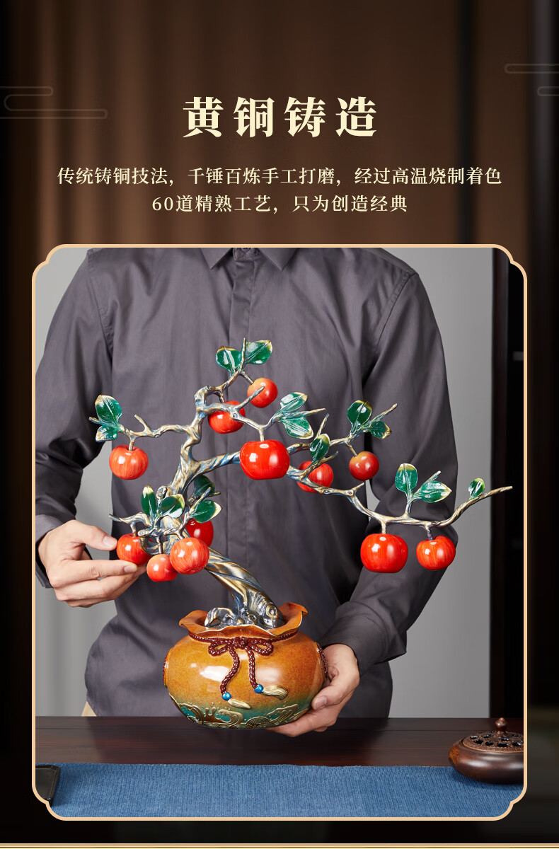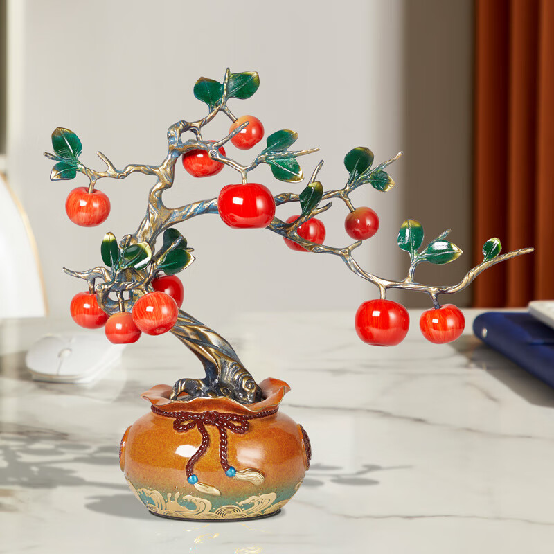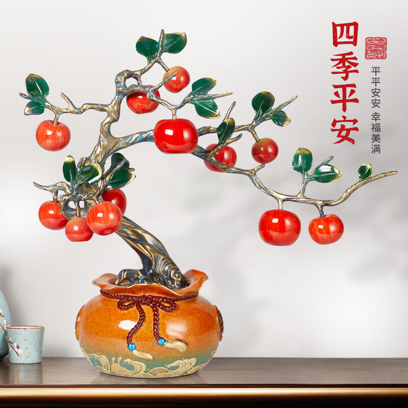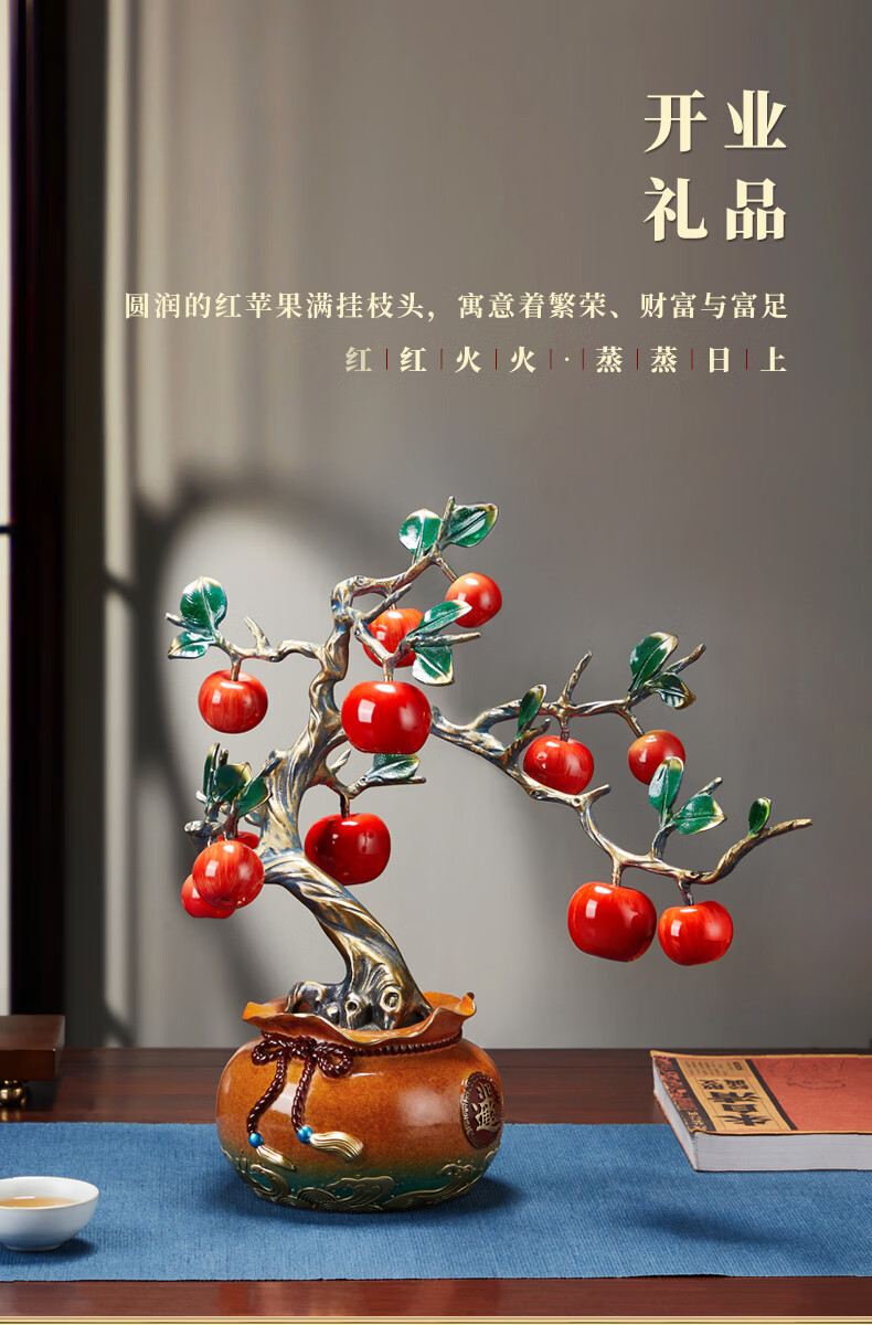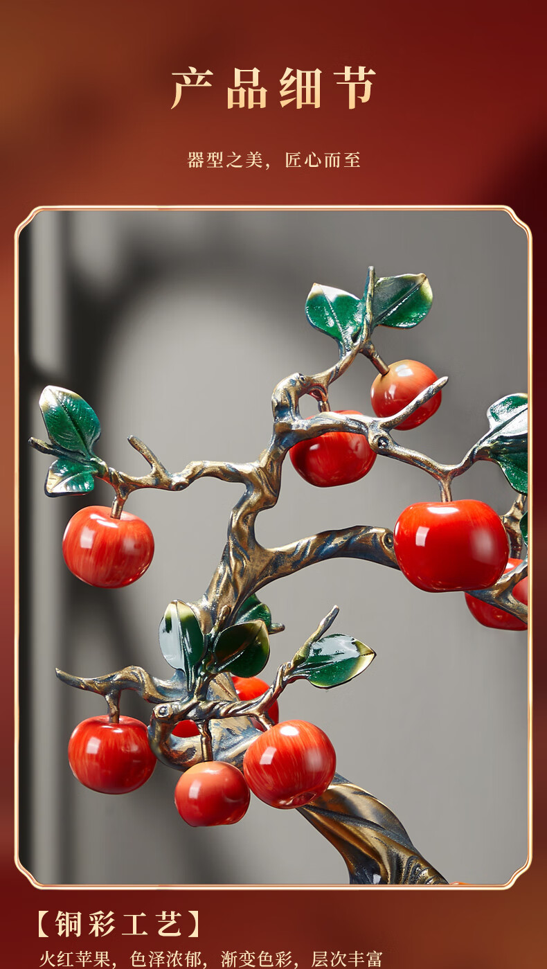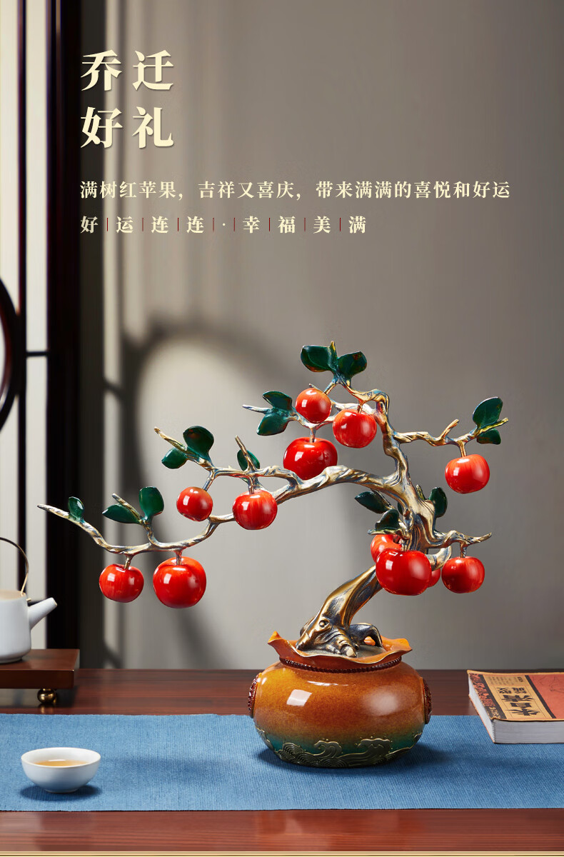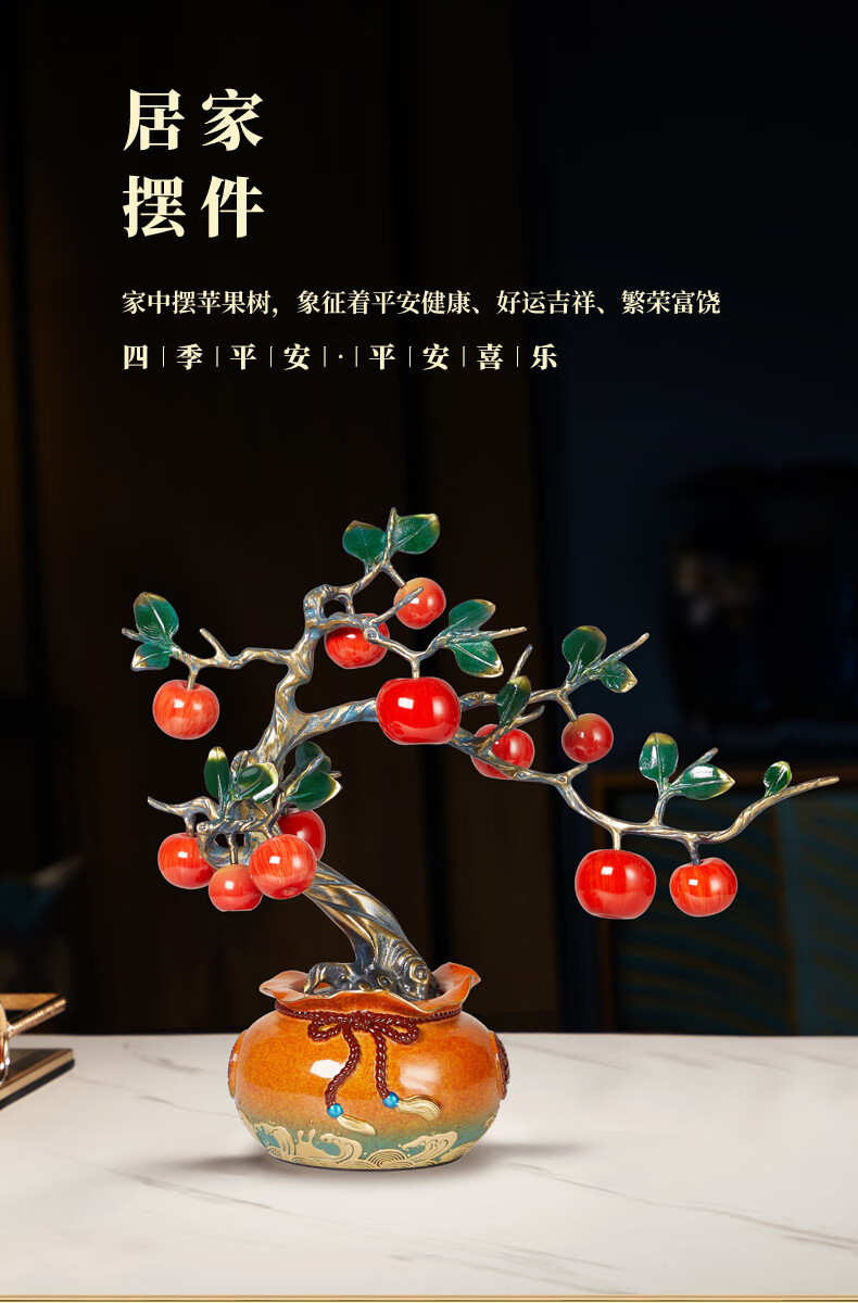 • 商品名称:诺诗曼平安喜乐铜摆件新中式客厅办公室玄关装饰工艺品乔迁之喜搬家礼物 四季平安铜苹果树摆件/个