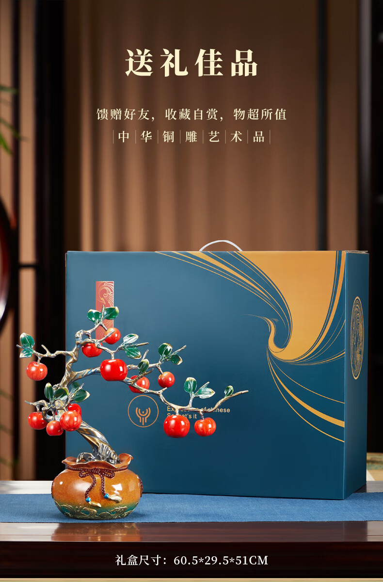 包装清单: 四季平安铜苹果树摆件 + 礼盒