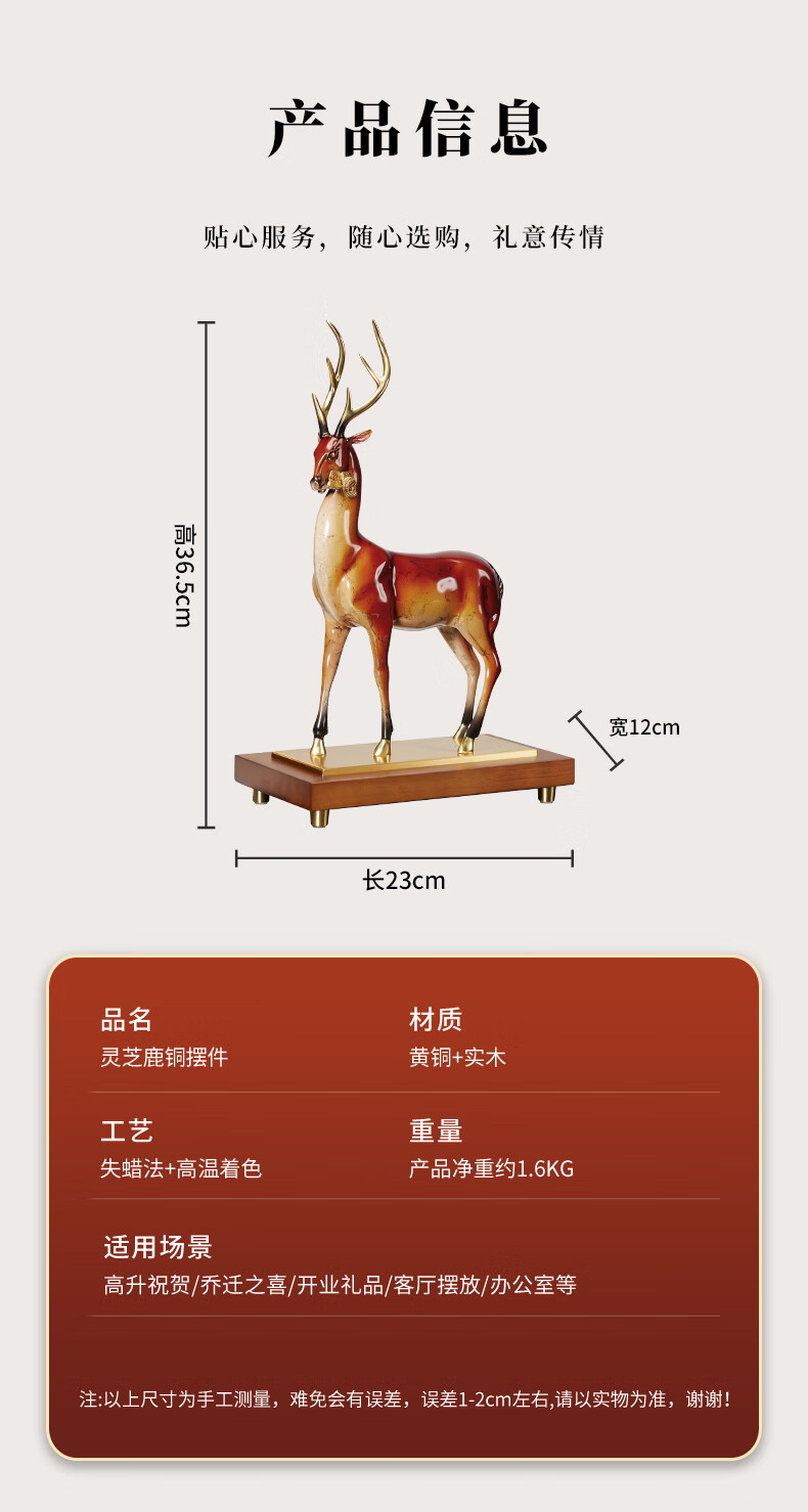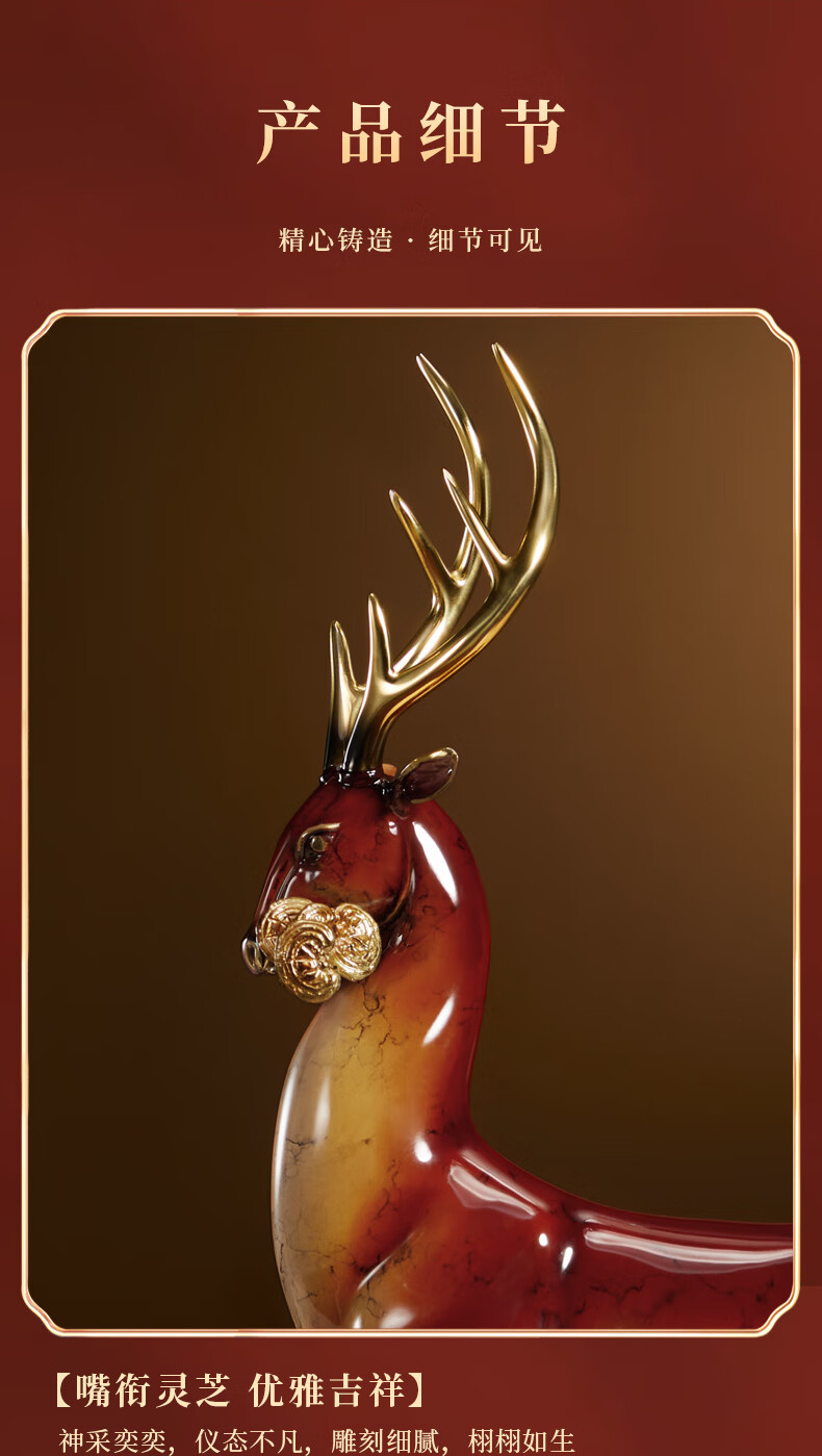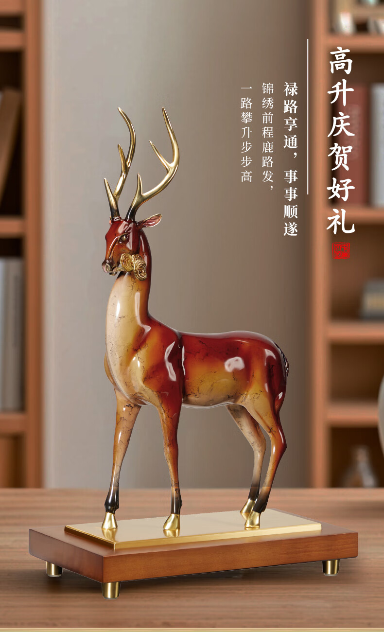 • 商品名称:诺诗曼一路高升铜鹿摆件办公室客厅玄关电视酒柜装饰品开业乔迁升职礼物 一路高升灵芝鹿铜摆件/个
