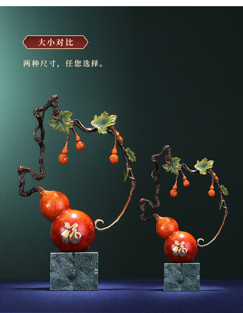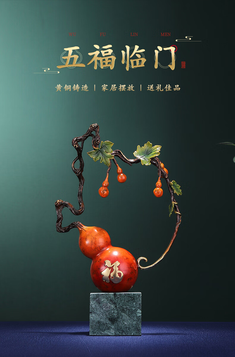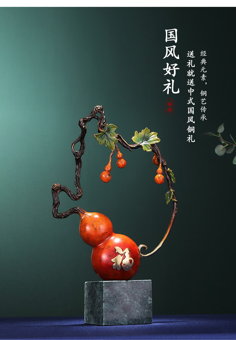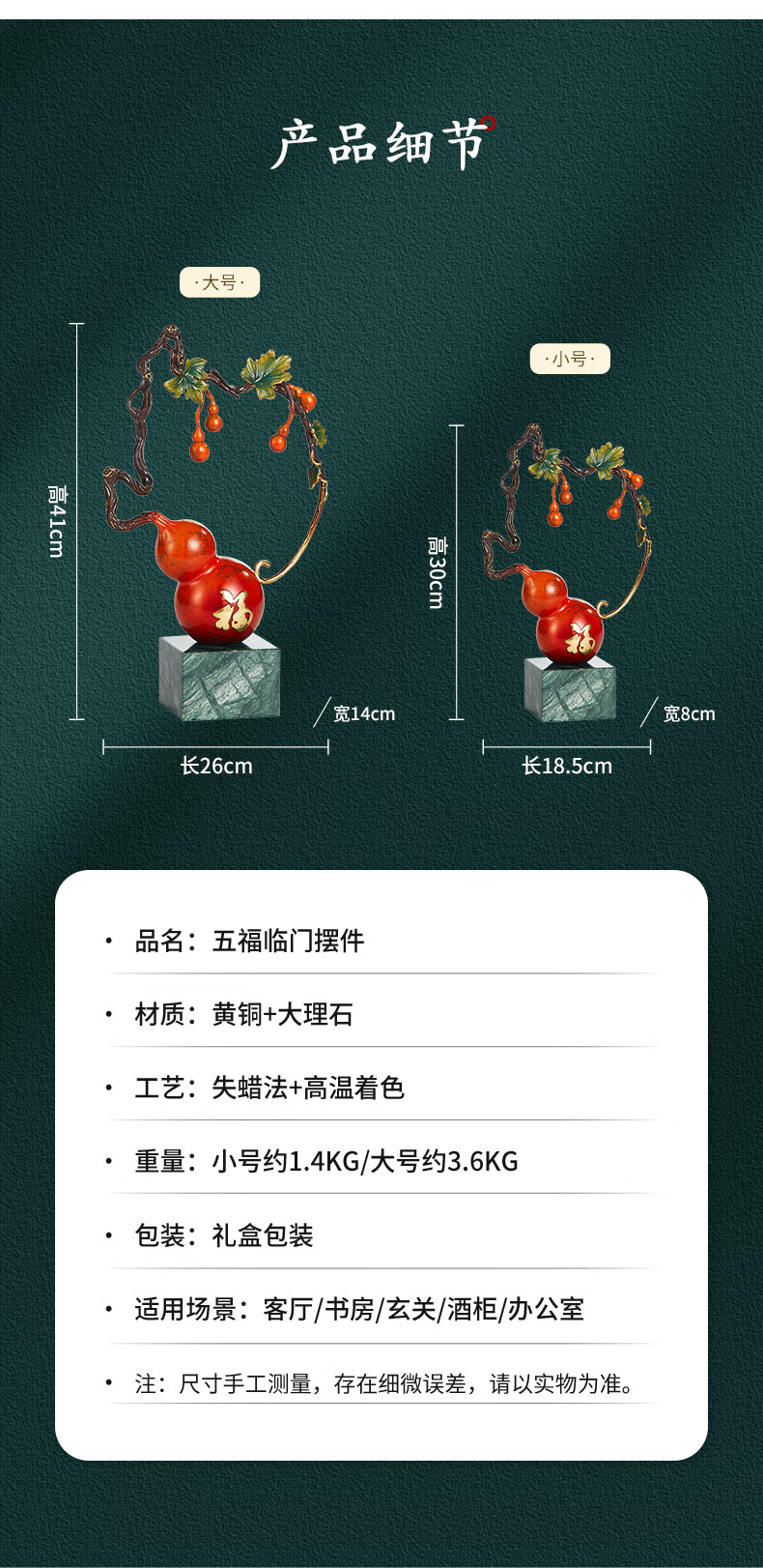 • 商品名称:诺诗曼办公室摆件客厅铜葫芦工艺品入户玄关装饰 乔迁新居礼物搬家开业 五福临门铜摆件大号/对