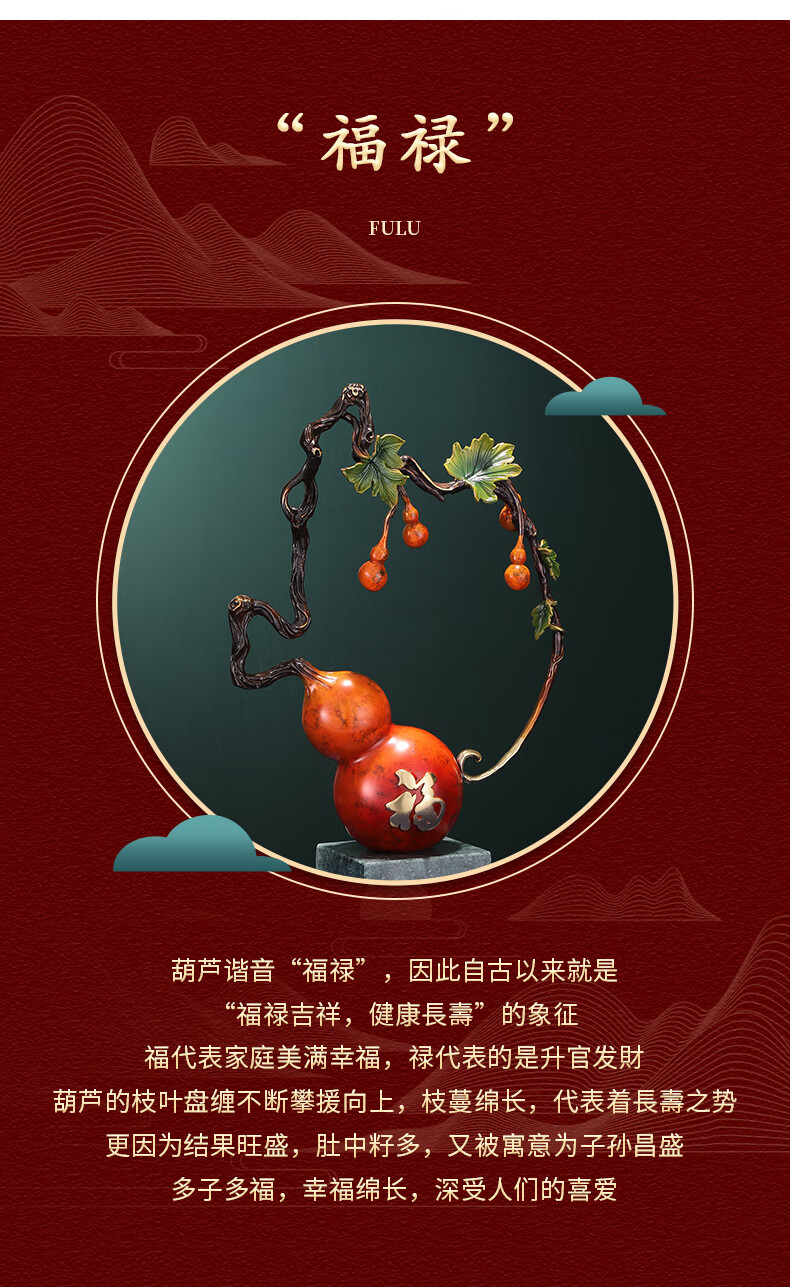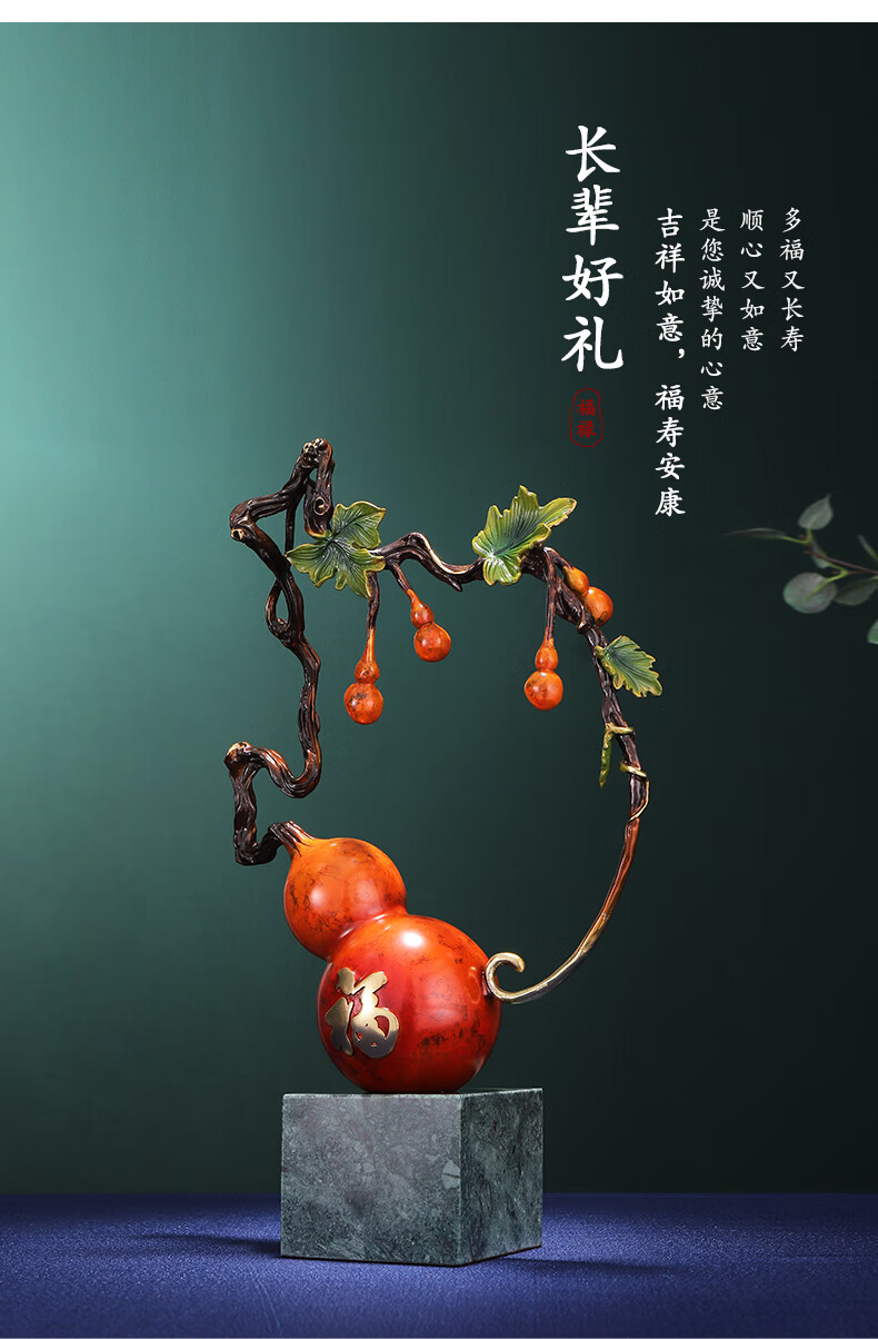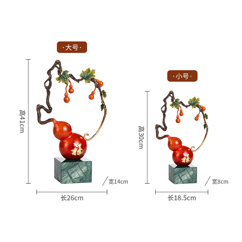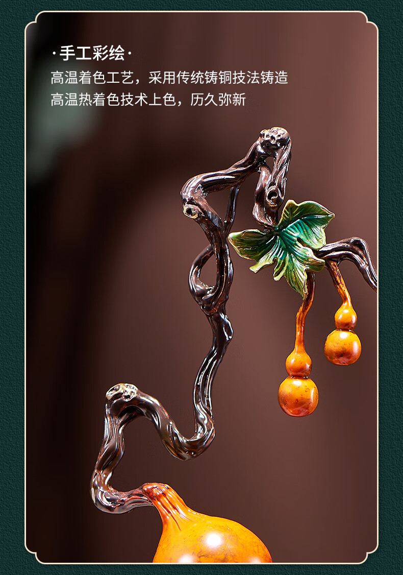 • 商品名称:诺诗曼办公室摆件客厅铜葫芦工艺品入户玄关装饰 乔迁新居礼物搬家开业 五福临门铜摆件大号/对