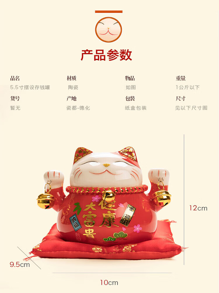 • 商品名称:板谷山 陶瓷招财猫摆件存钱储蓄罐家居创意手办礼品生日礼物圣诞 创意礼品/个