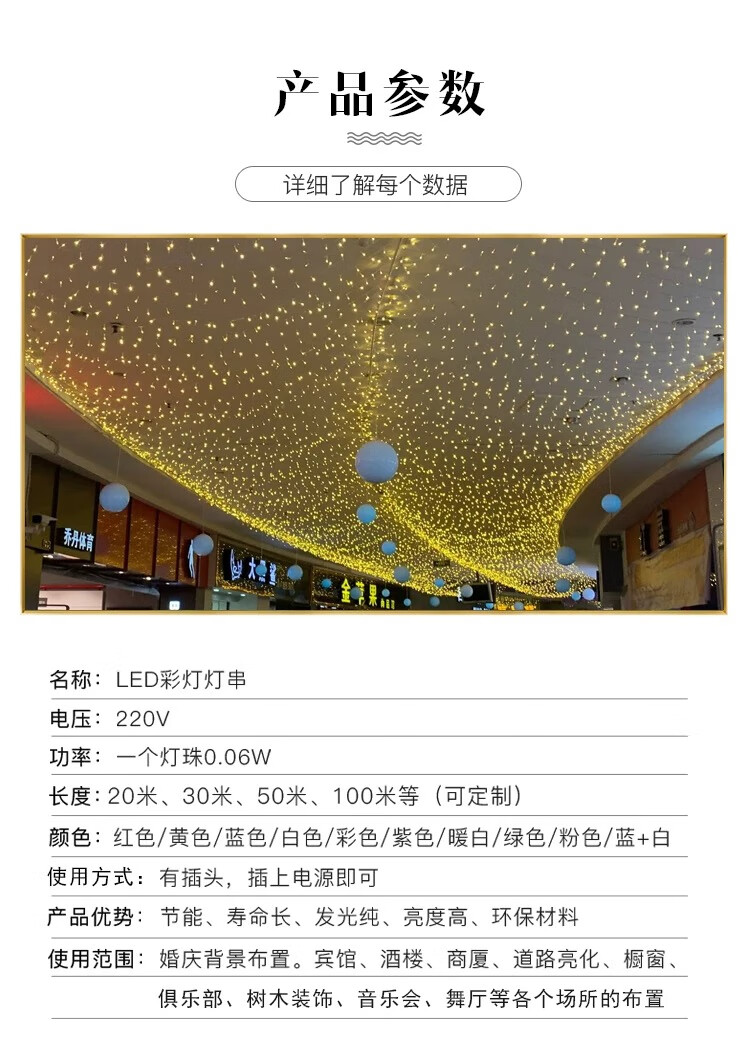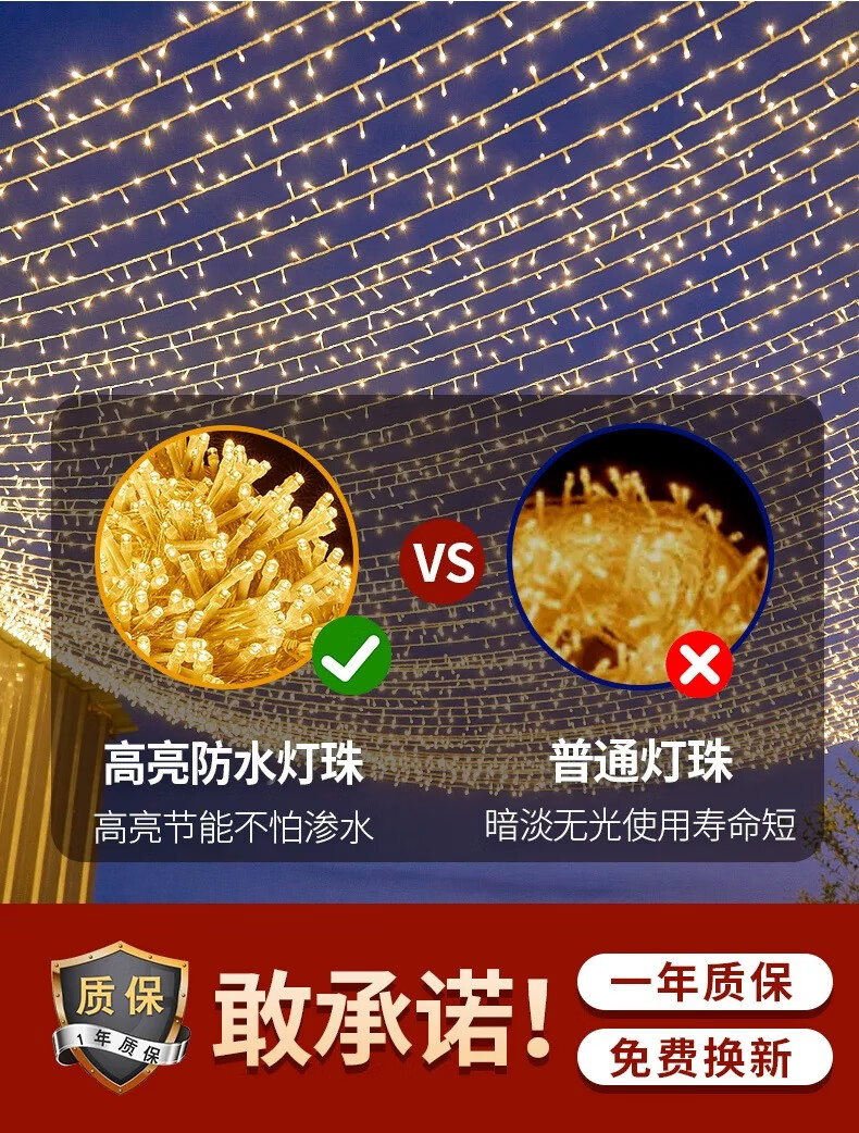 • 商品名称:黛莉嘉尔新年装饰led小彩灯串灯户外防水满天星春节装饰节日插电装饰灯带 彩色插电50米500灯8闪+尾插可串联/包