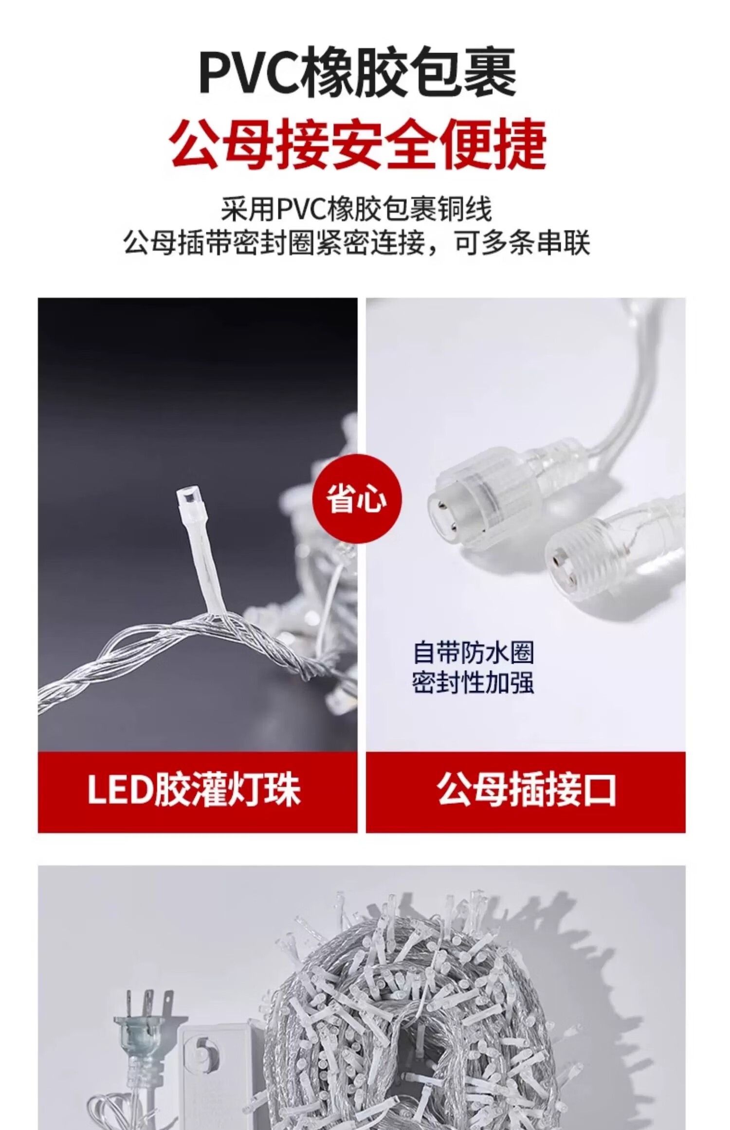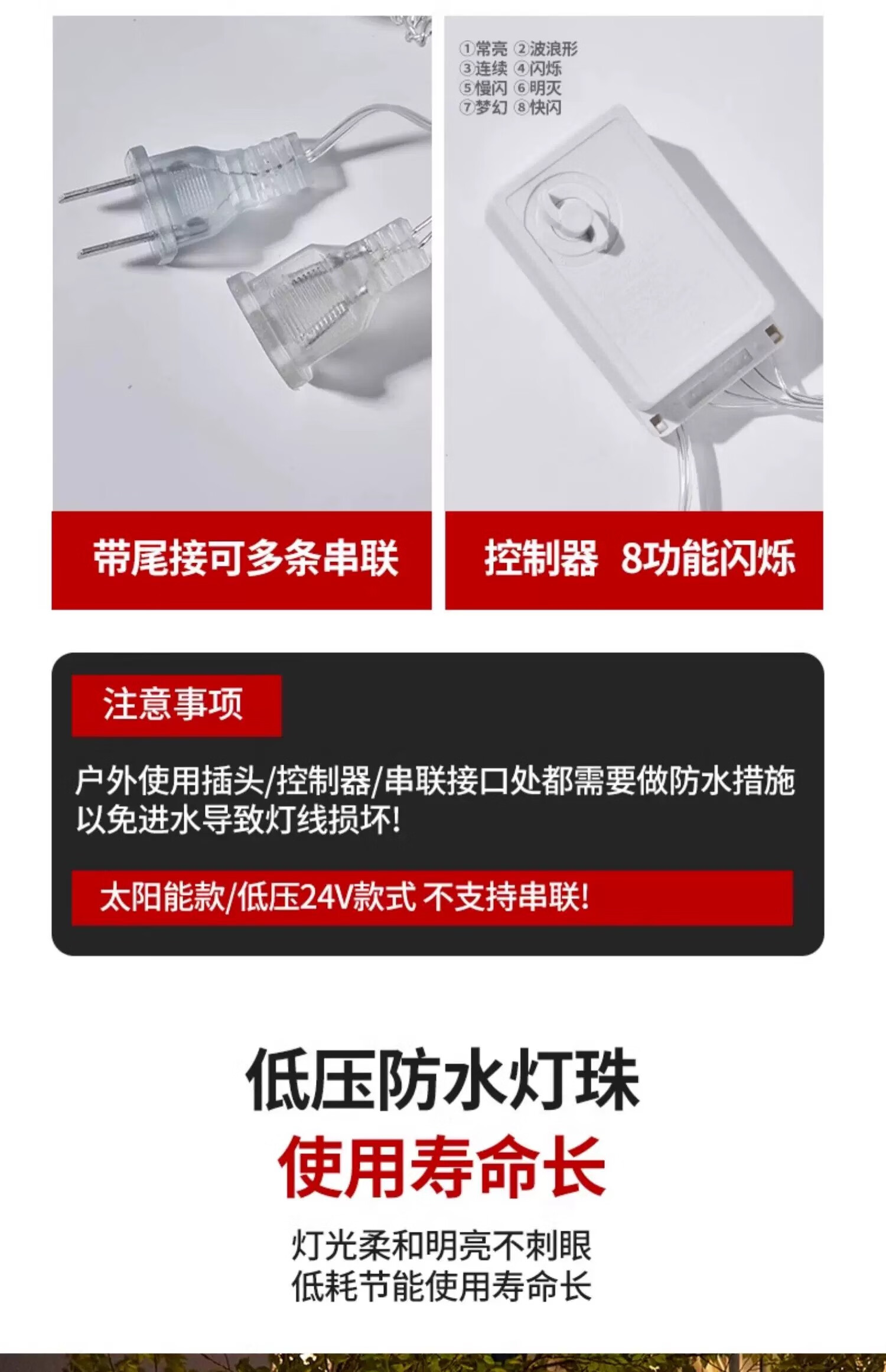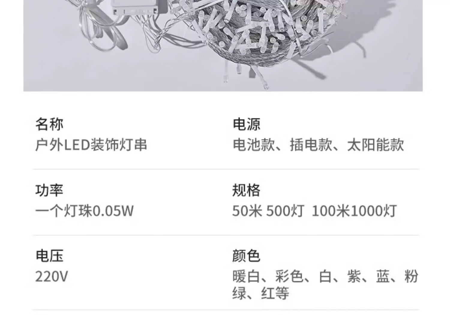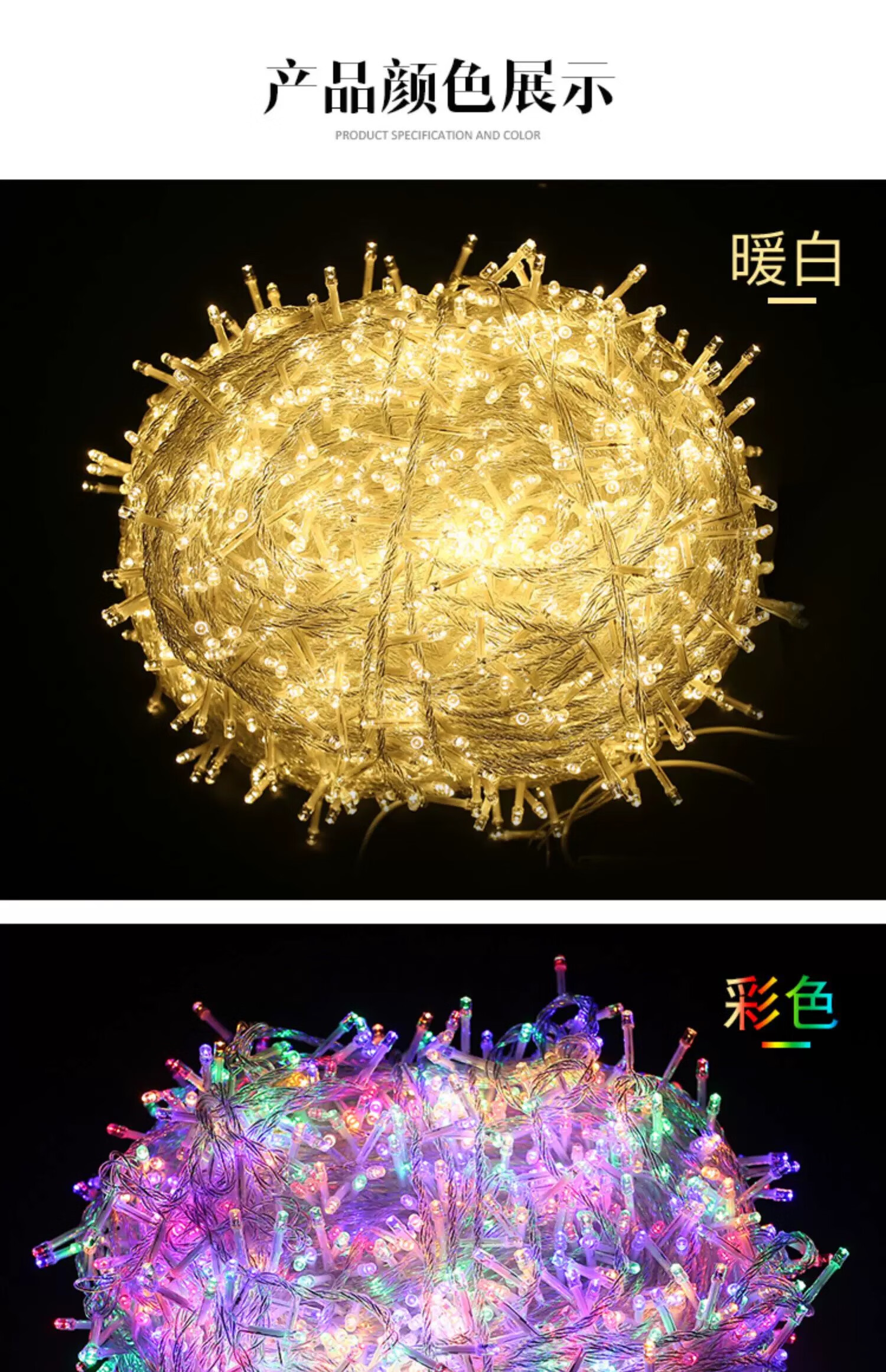 包装清单: 彩色插电50米500灯8闪+尾插可串联