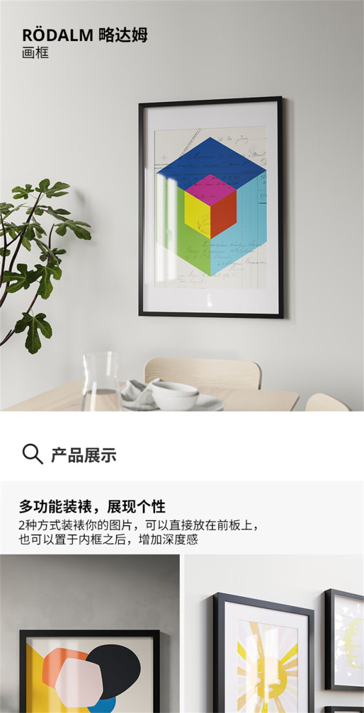 家居饰品  > 相框/照片墙/执照框  > 相框  >  宜家/IKEA  >  宜家 IKEA RODALM 略达姆 画框 黑色 61x91厘米 36寸 相框/个
