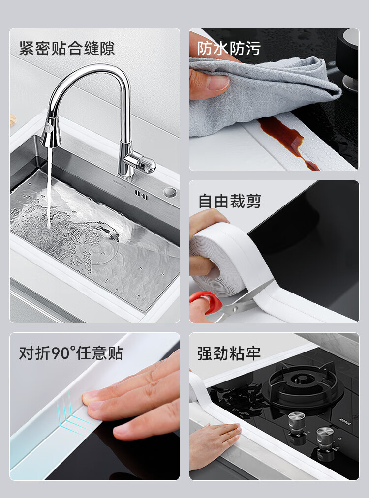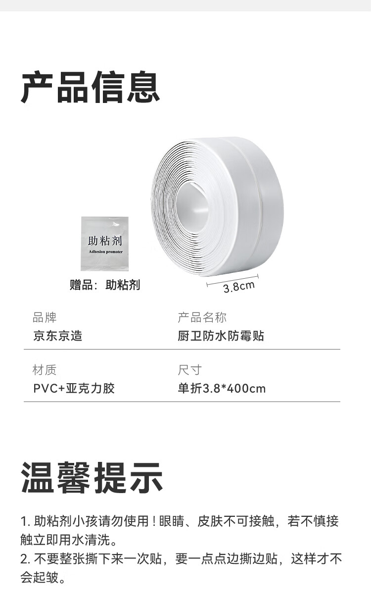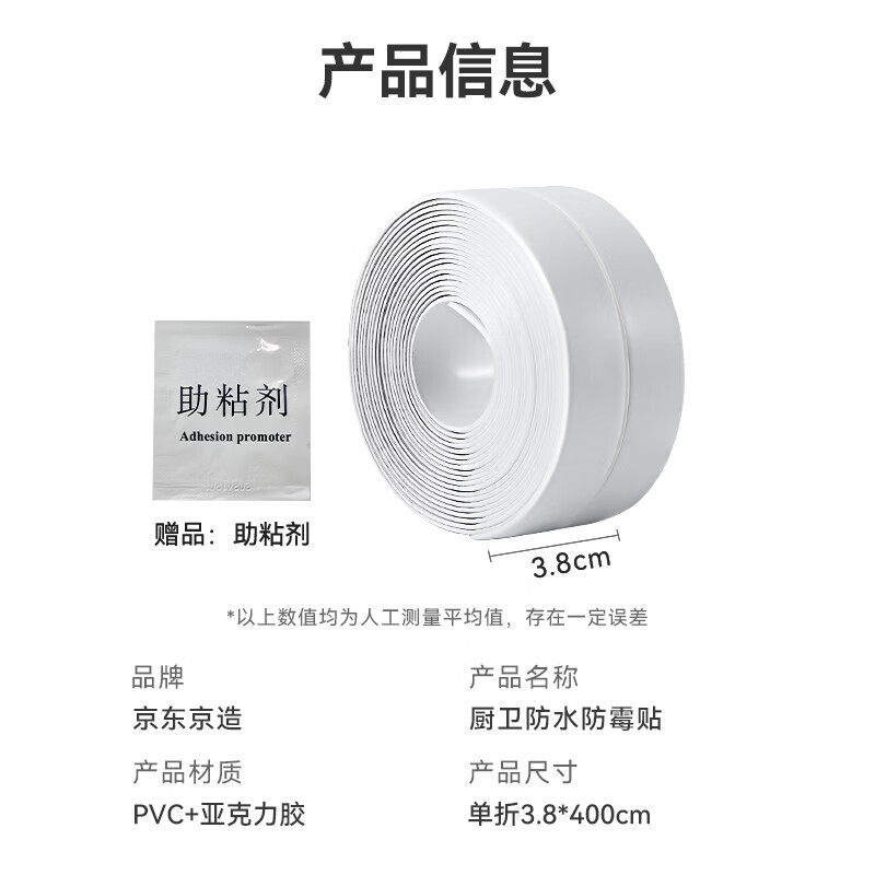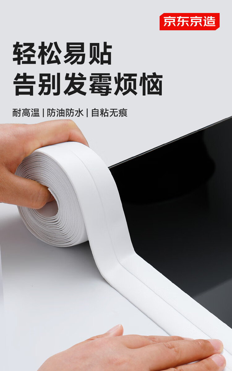 商品名称: 京东京造 厨房卫生间防水条防水防霉胶带 水槽灶台封边卫生间马桶边缘 JZ-DQ136/件