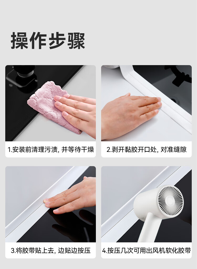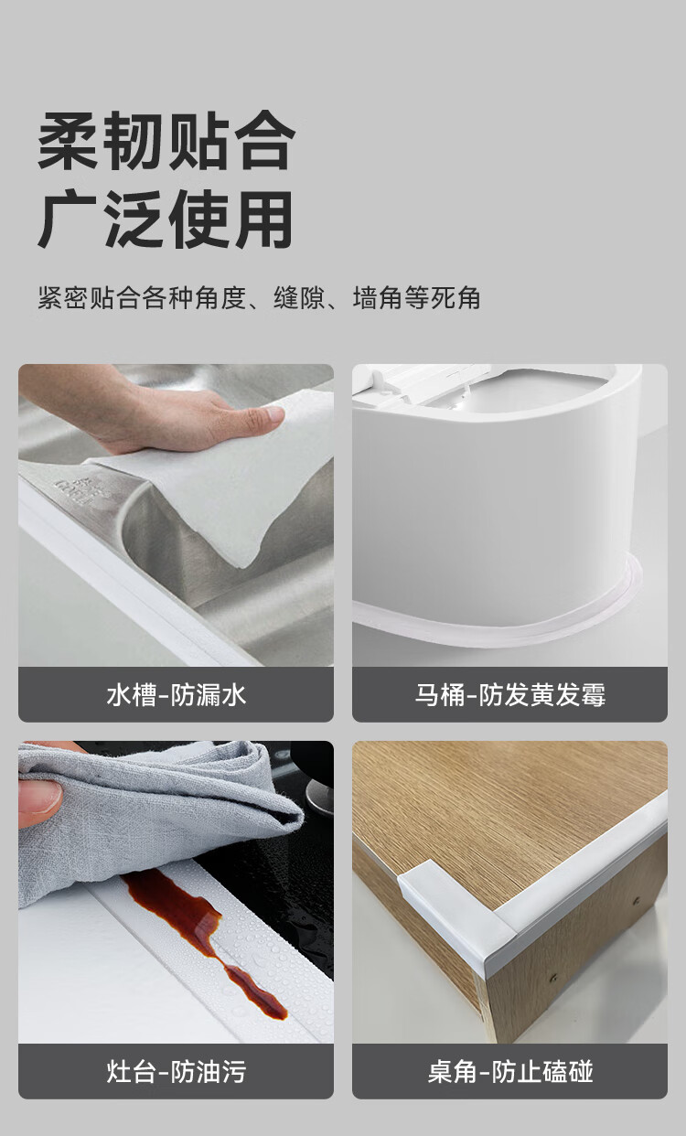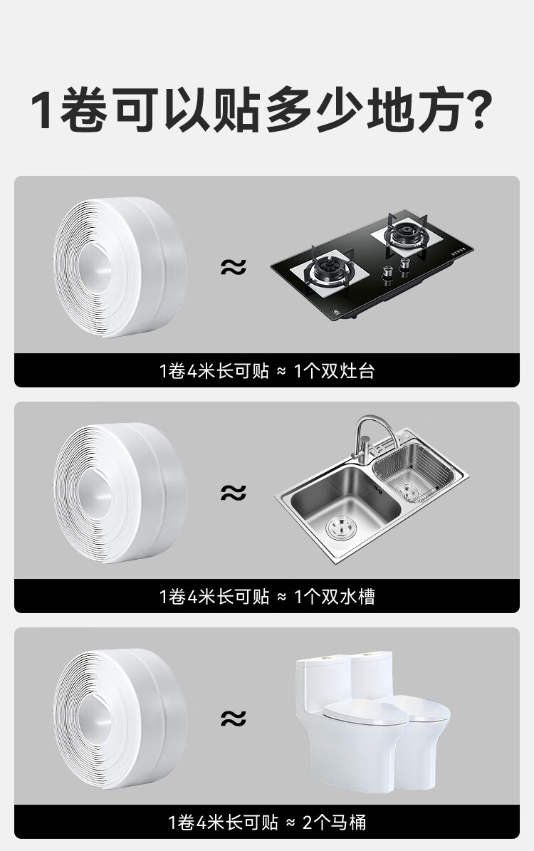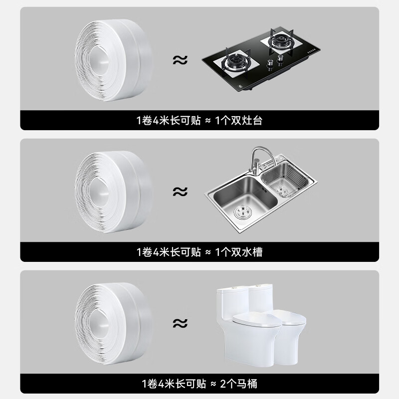 商品名称: 京东京造 厨房卫生间防水条防水防霉胶带 水槽灶台封边卫生间马桶边缘 JZ-DQ136/件