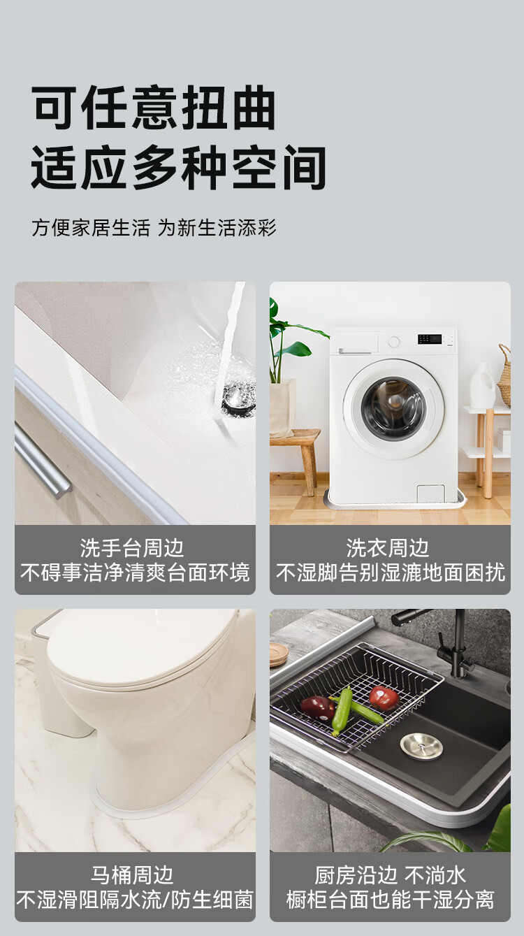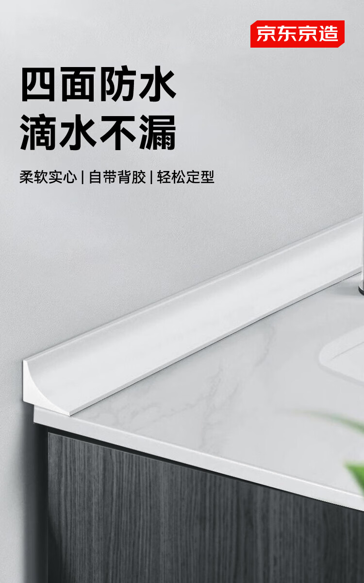 京东京造 厨卫挡水条止水防水 洗漱台洗澡间防水胶条台面水盆挡水神器 JZ-DQ137/件