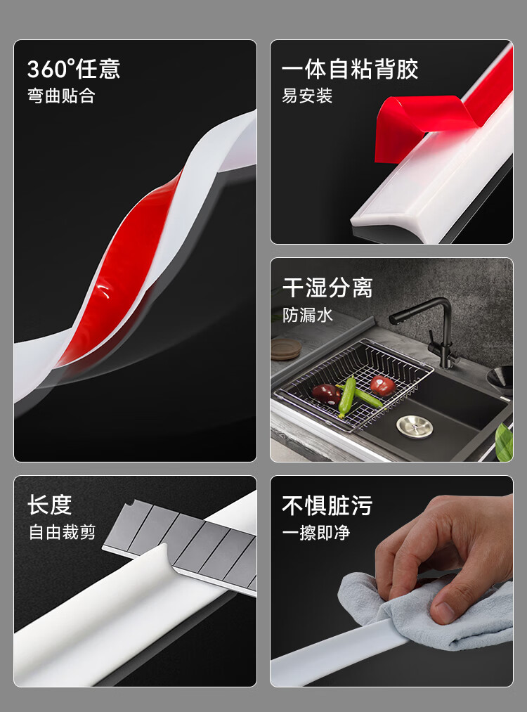 家居饰品  > 贴饰  > 美缝贴  >  京东京造  >  京东京造 厨卫挡水条止水防水 洗漱台洗澡间防水胶条台面水盆挡水神器 JZ-DQ137/件