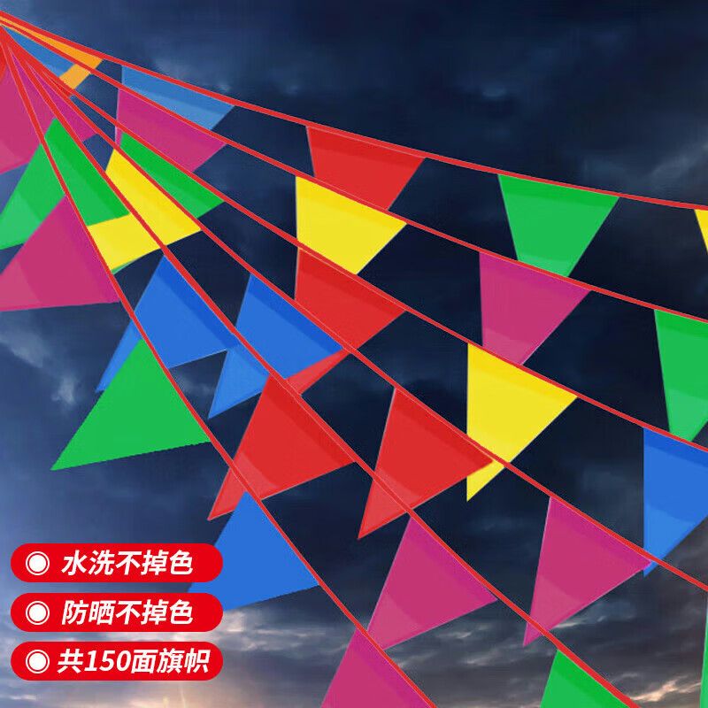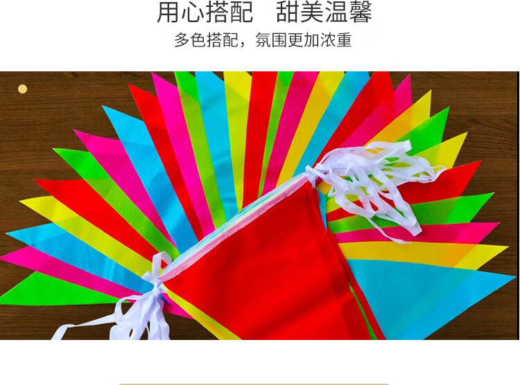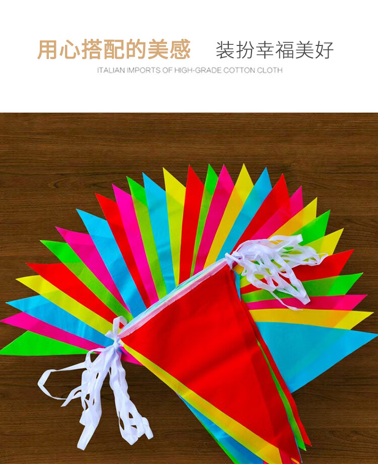 • 商品名称:佳妍新年彩旗串旗 春节装饰教室幼儿园庭院布置拉旗75米150面 佳妍彩旗150个装/面