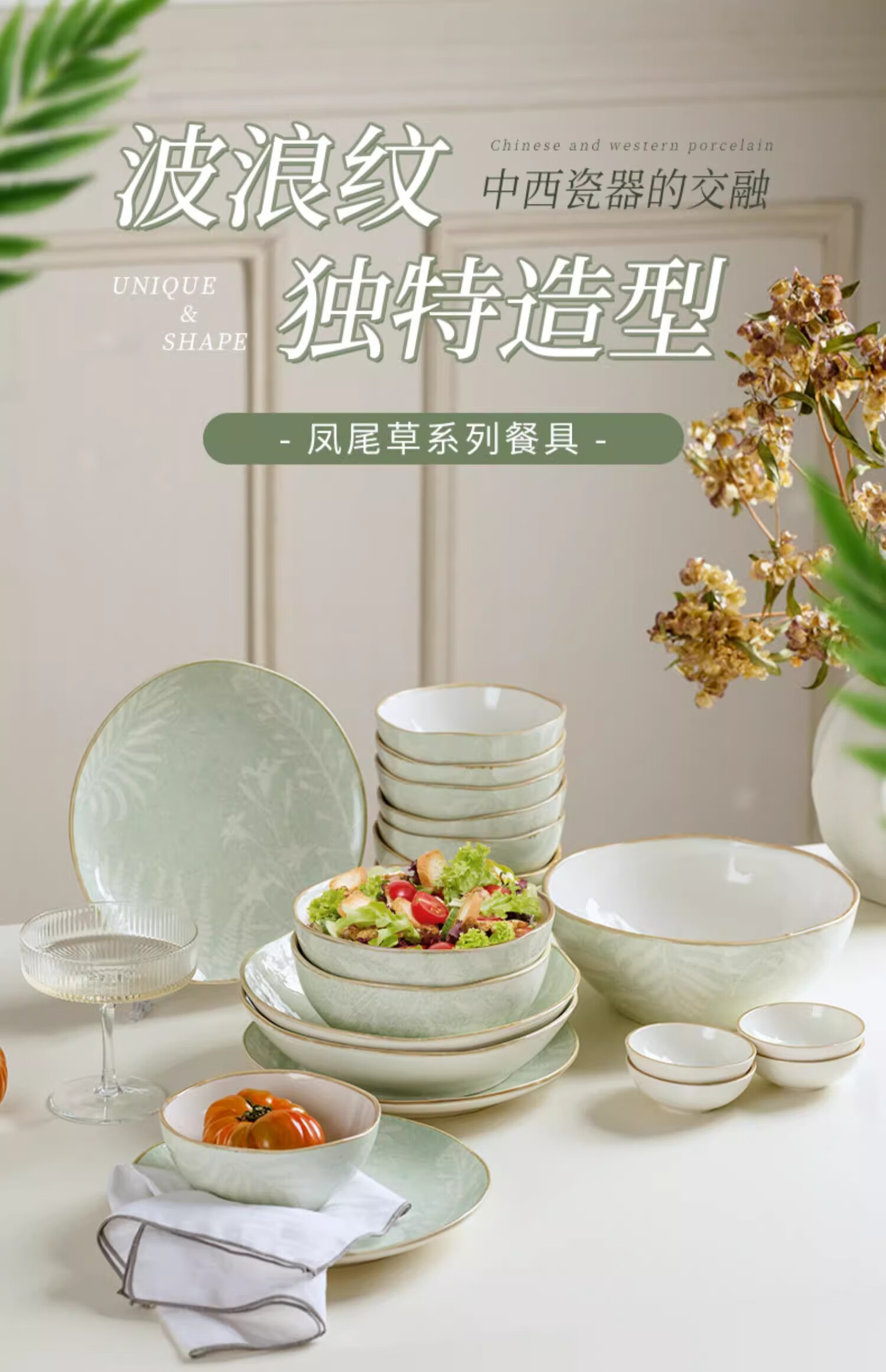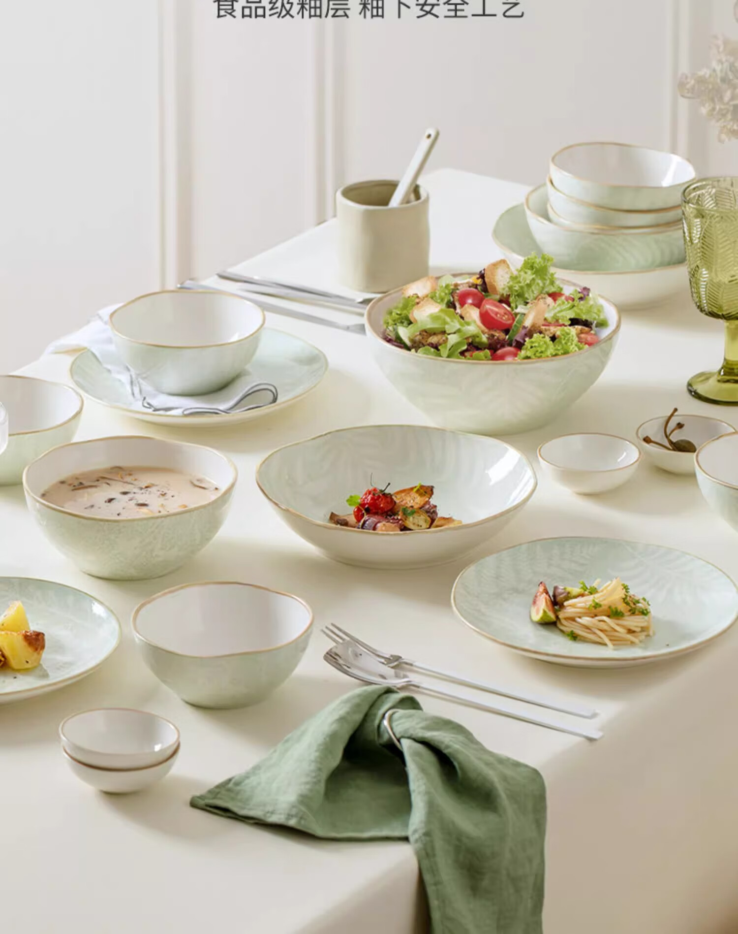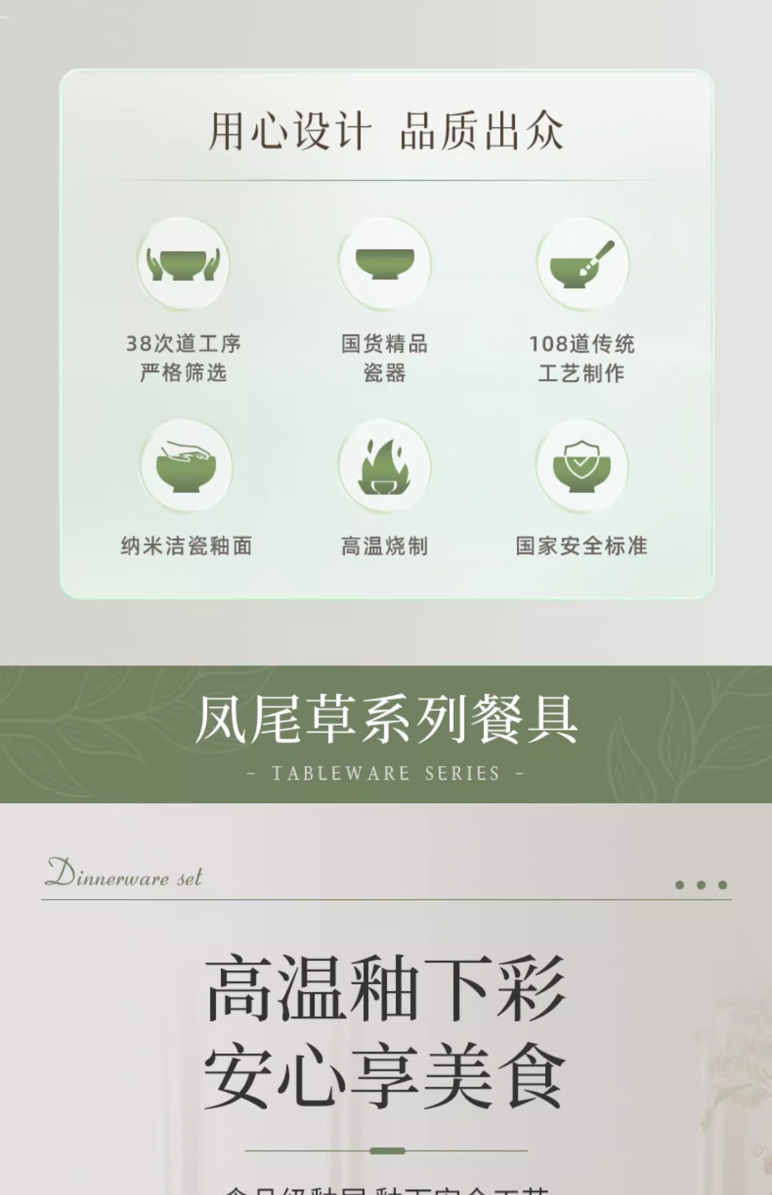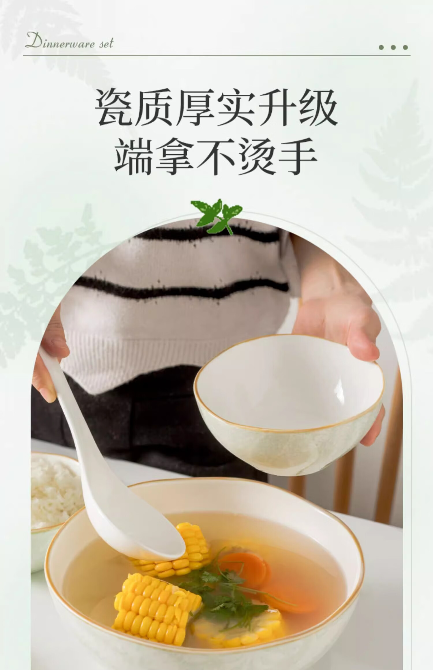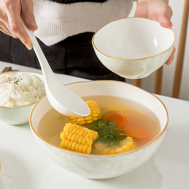 • 商品名称:松发瓷器陶瓷餐具碗碟套装釉下彩整套碗盘筷套装乔迁彩盒28头凤尾草绿 餐具套装/套
