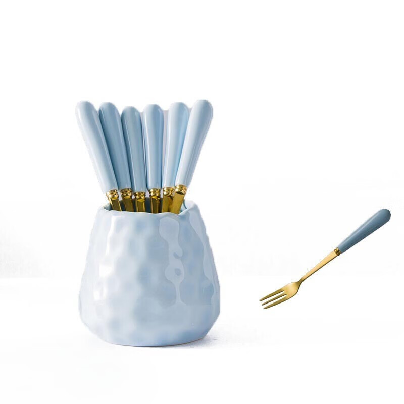 商品名称: 丹诗致远 北欧轻奢不锈钢水果叉套装可爱水果签 浮雕蓝色金6叉+收纳罐 浮雕蓝色金6叉+收纳罐/个