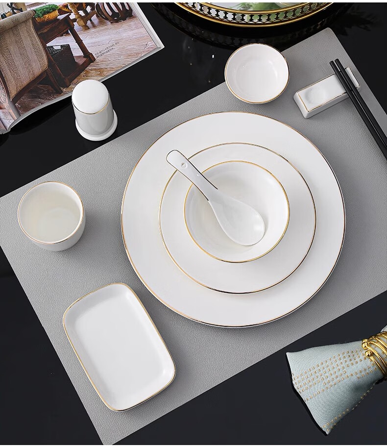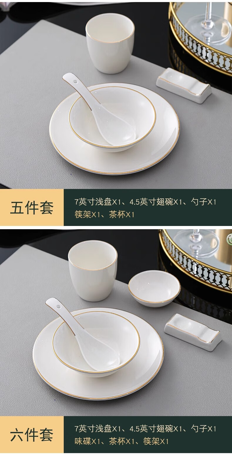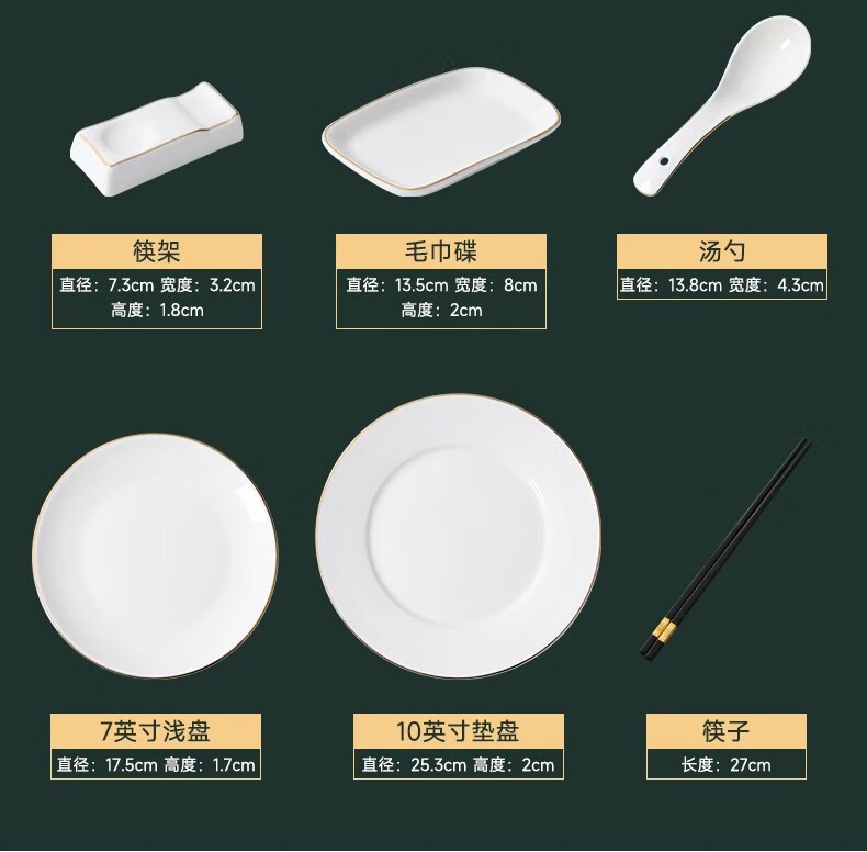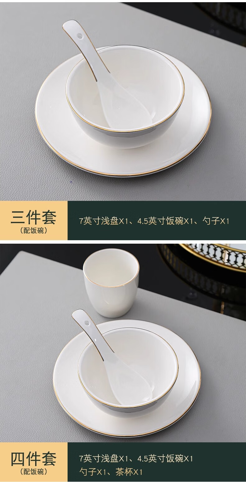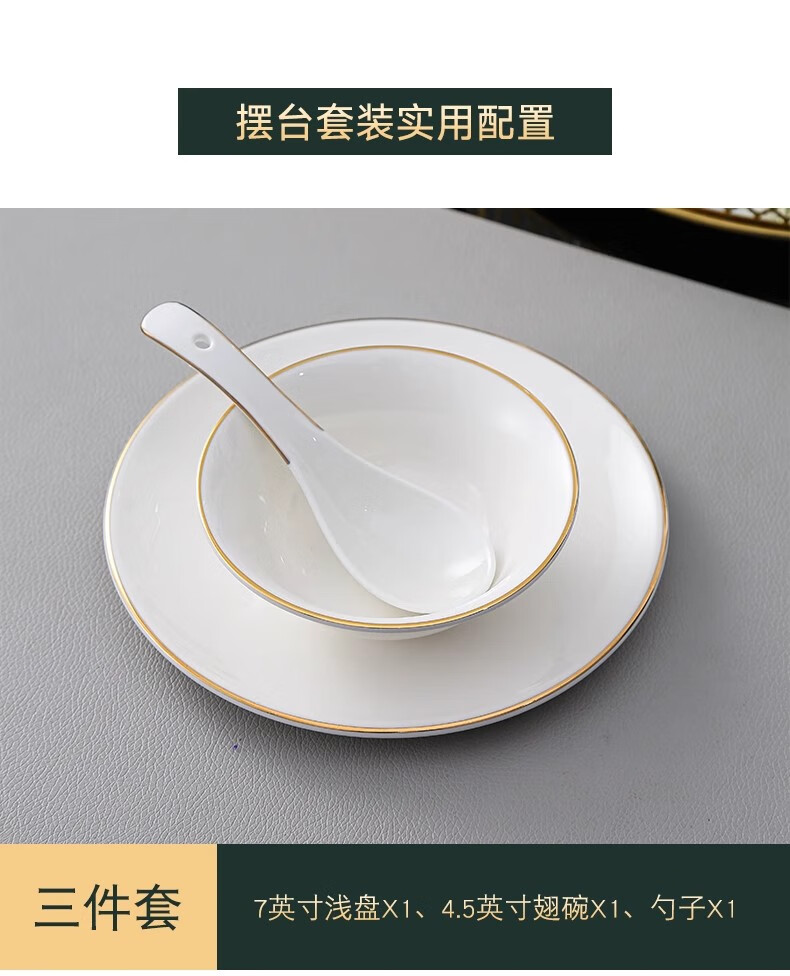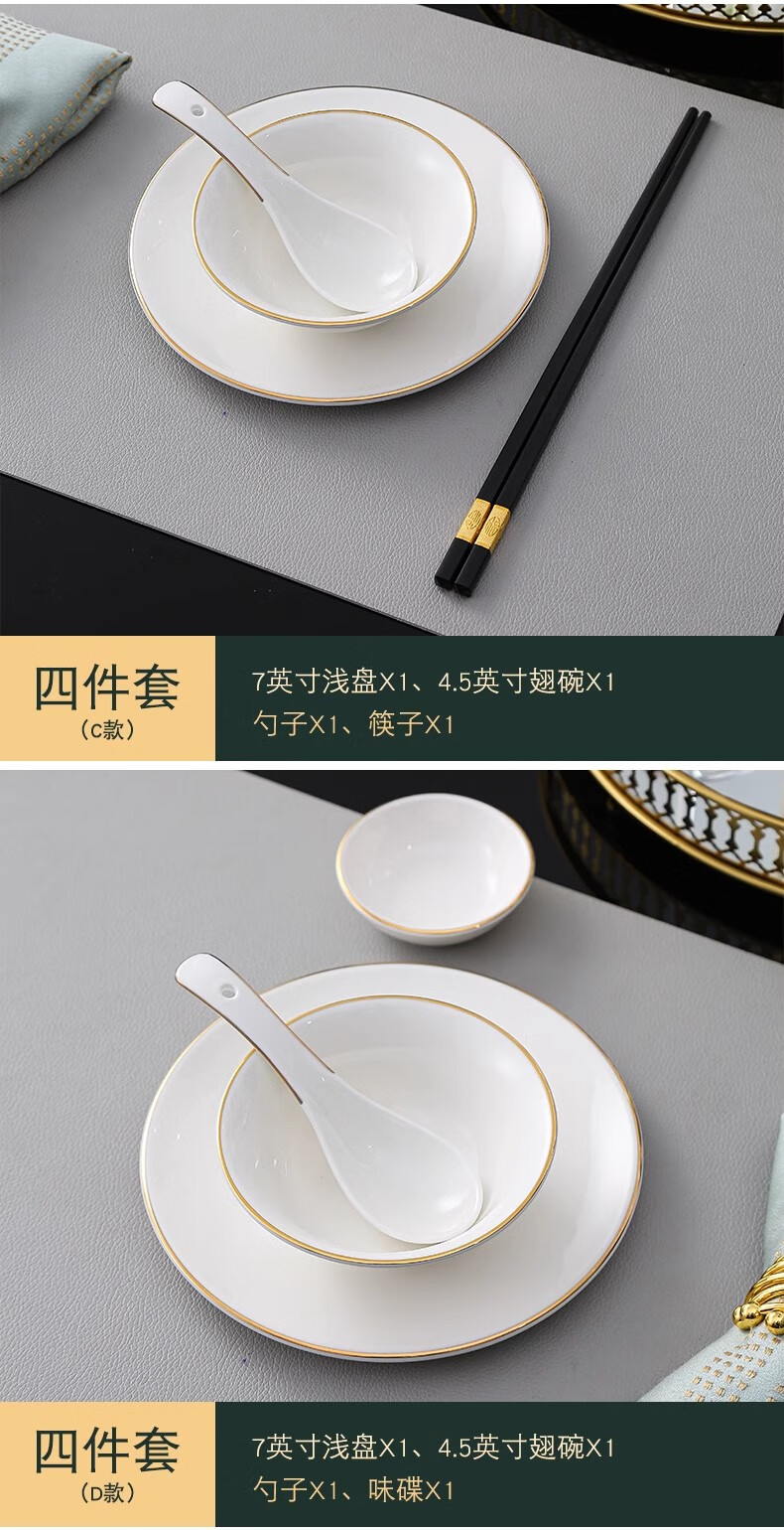 • 商品名称:彩塘智造 高档摆台餐具碗盘碟筷勺套装可定制 金边四件套B 金边四件套B/套