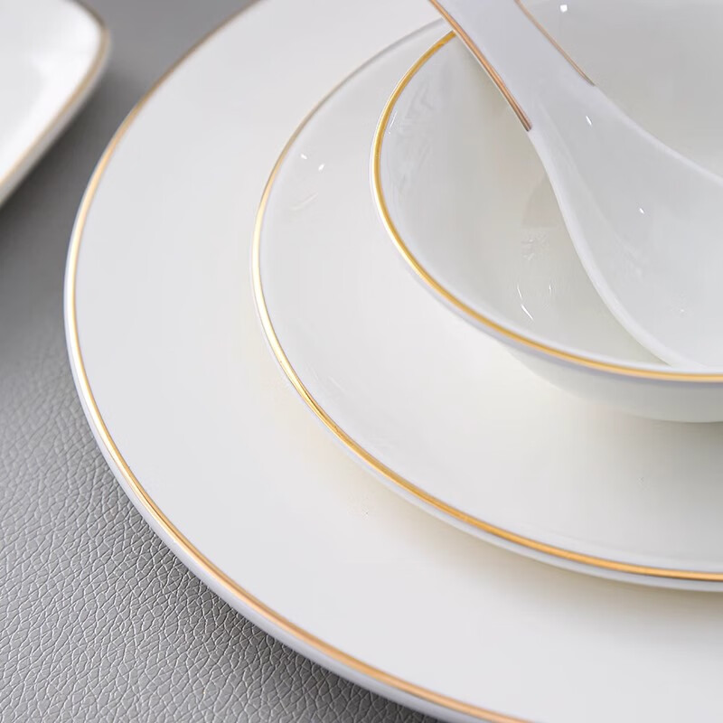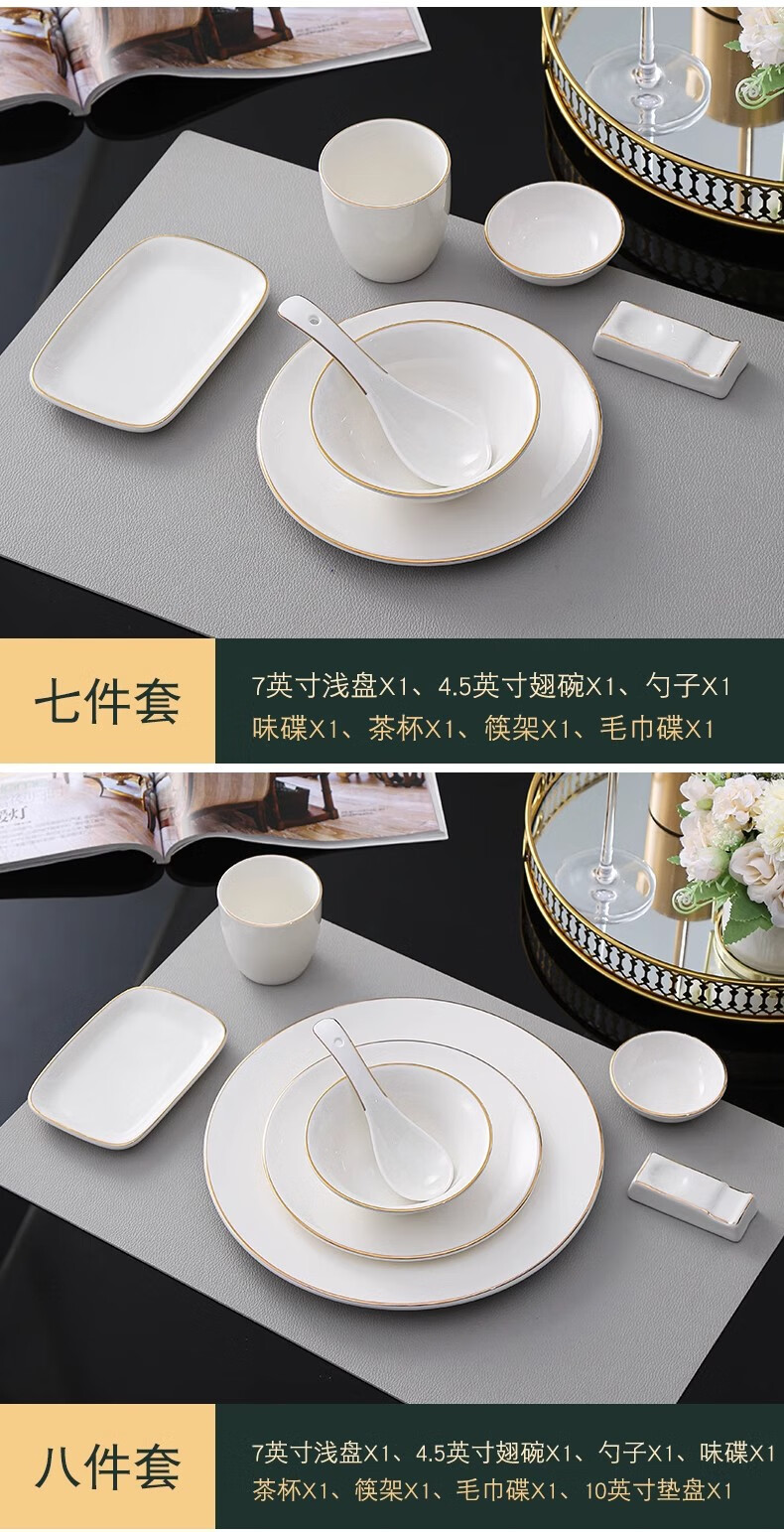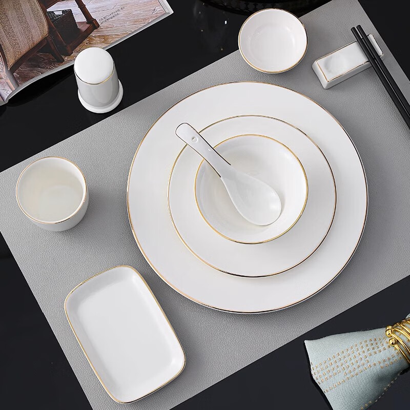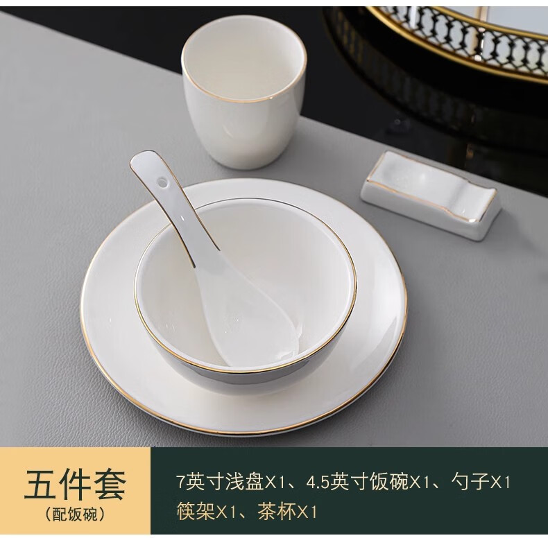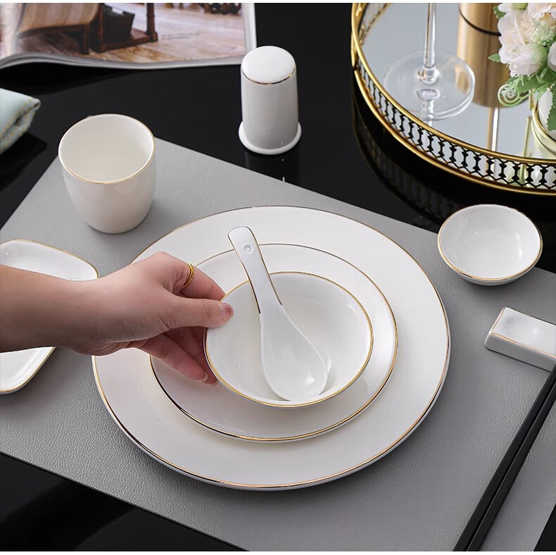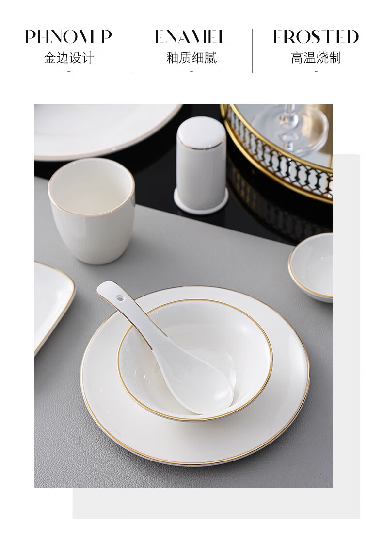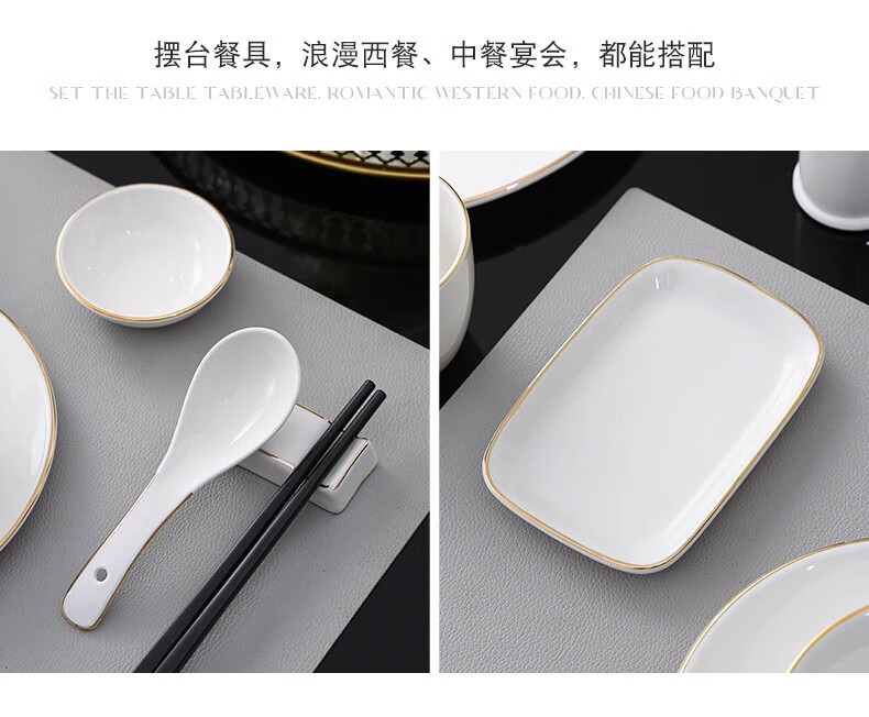 • 商品名称:彩塘智造 高档摆台餐具碗盘碟筷勺套装可定制 金边四件套B 金边四件套B/套
