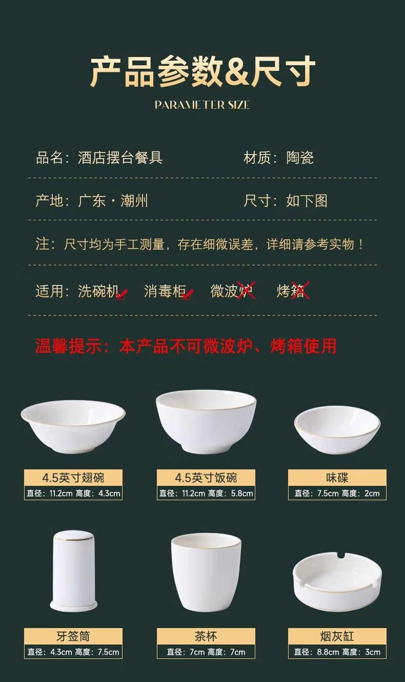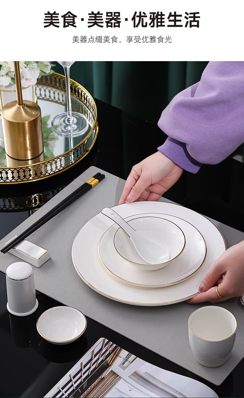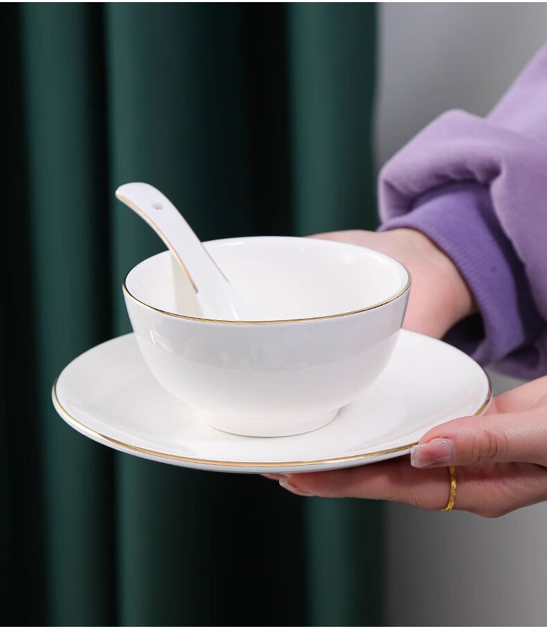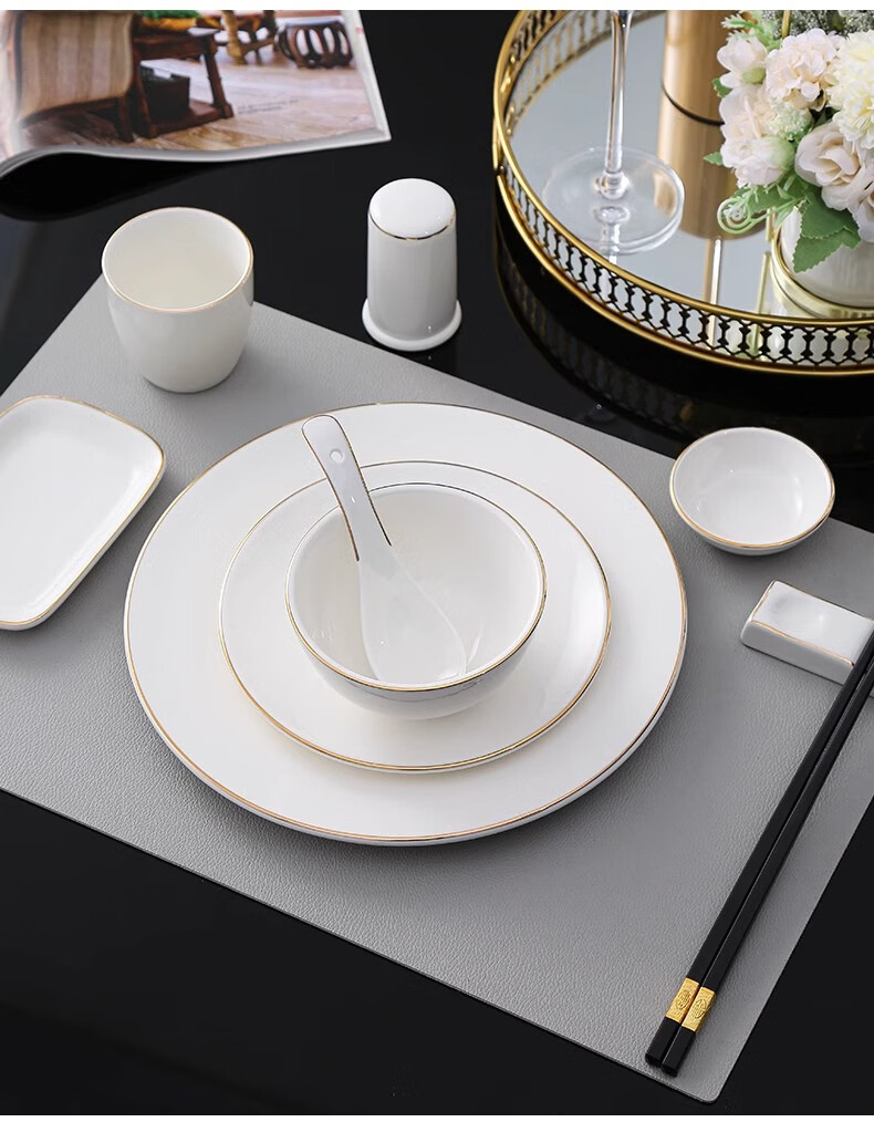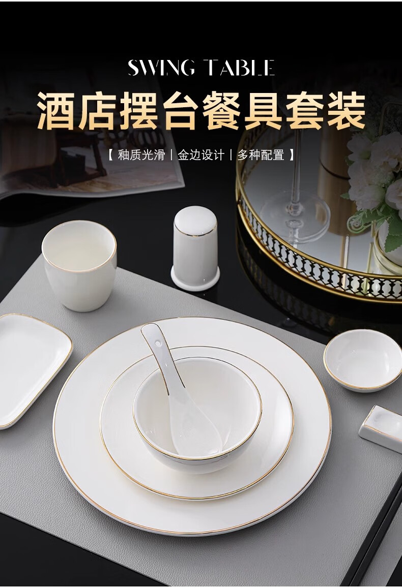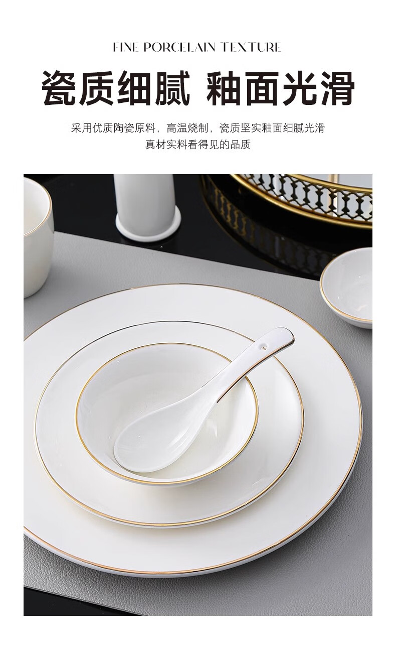 • 商品名称:彩塘智造 高档摆台餐具碗盘碟筷勺套装可定制 金边四件套B 金边四件套B/套