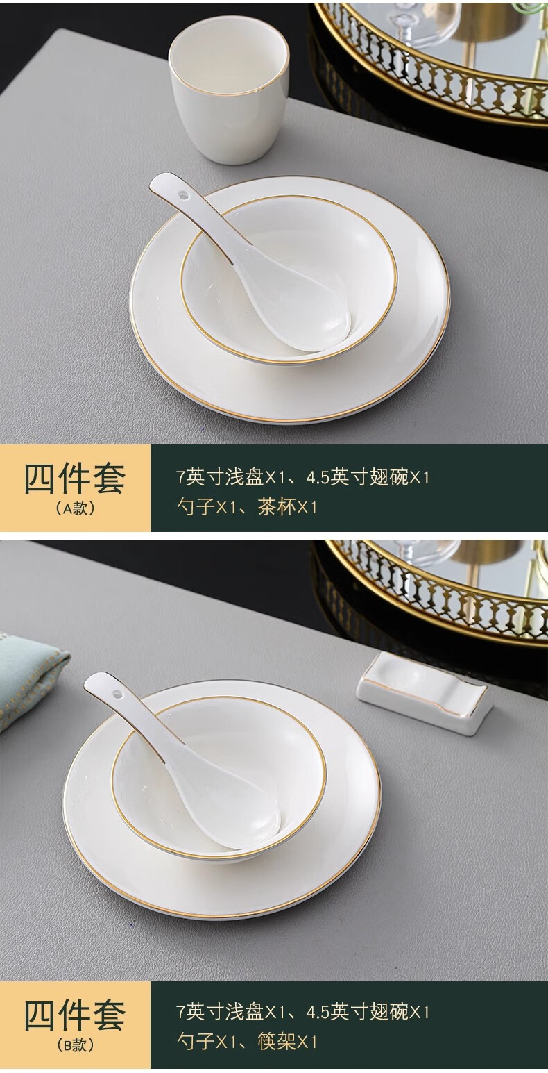 彩塘智造 高档摆台餐具碗盘碟筷勺套装可定制 金边四件套B 金边四件套B/套