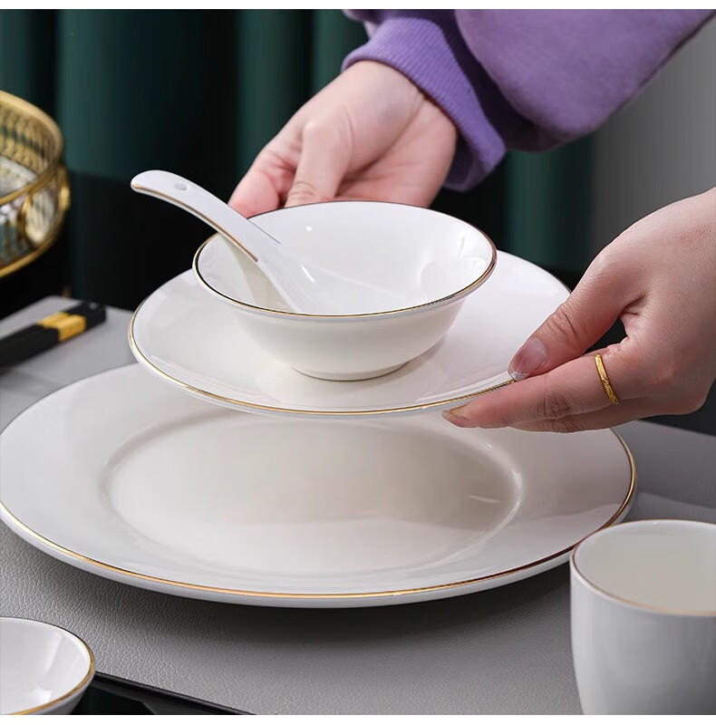 厨具  > 餐具  > 餐具套装  >  彩塘智造  >  彩塘智造 高档摆台餐具碗盘碟筷勺套装可定制 金边四件套B 金边四件套B/套