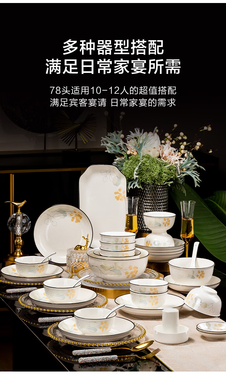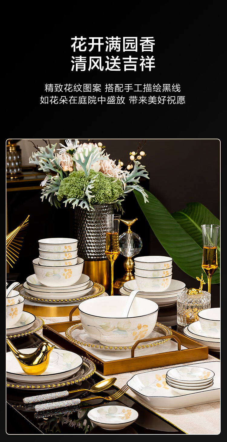 • 商品名称:惠寻 餐具套装整套 景德镇家用陶瓷碗碟套装78头花开富贵 78头美好生活/套