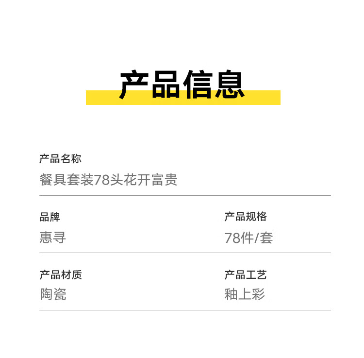 商品名称: 惠寻 餐具套装整套 景德镇家用陶瓷碗碟套装78头花开富贵 78头美好生活/套