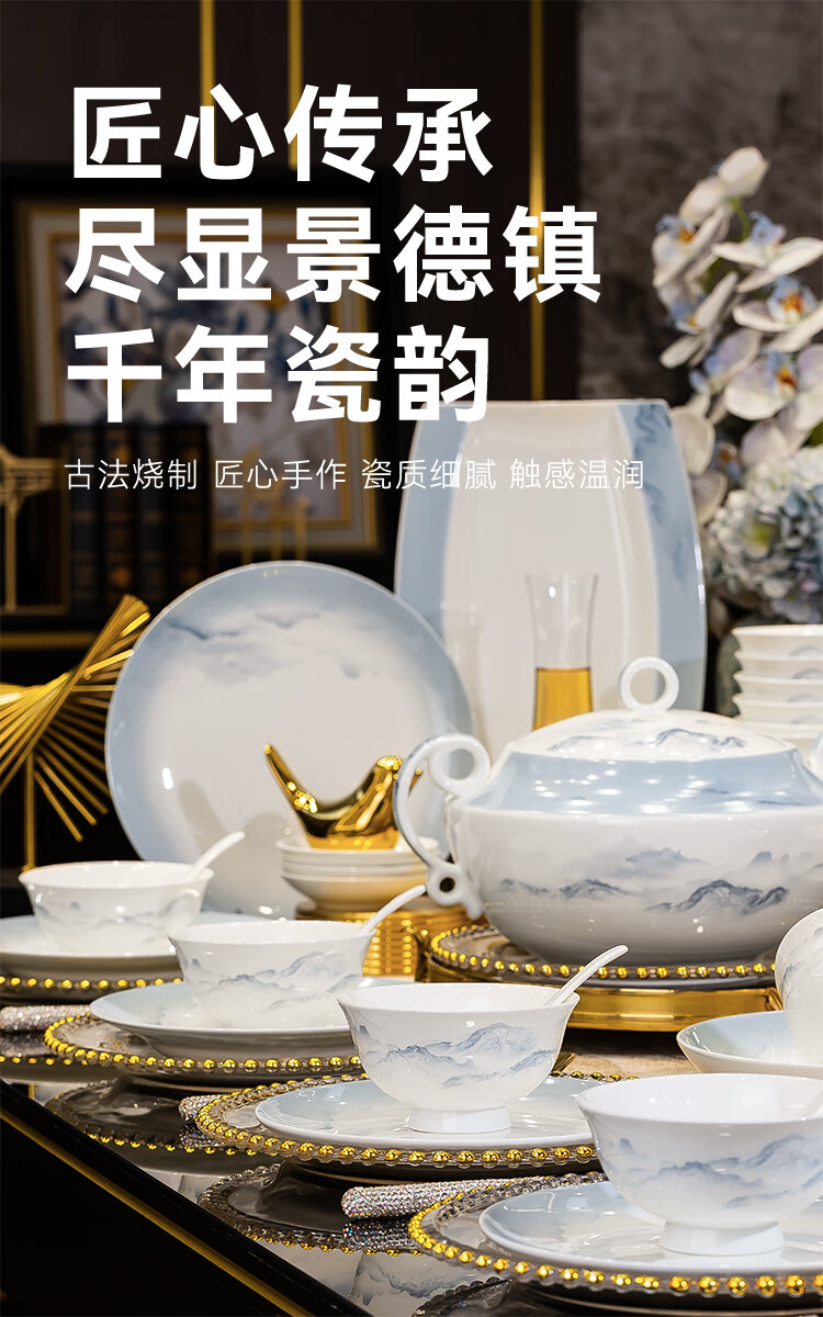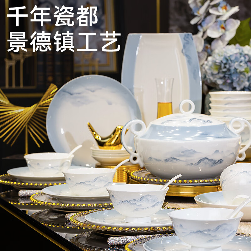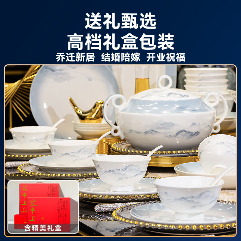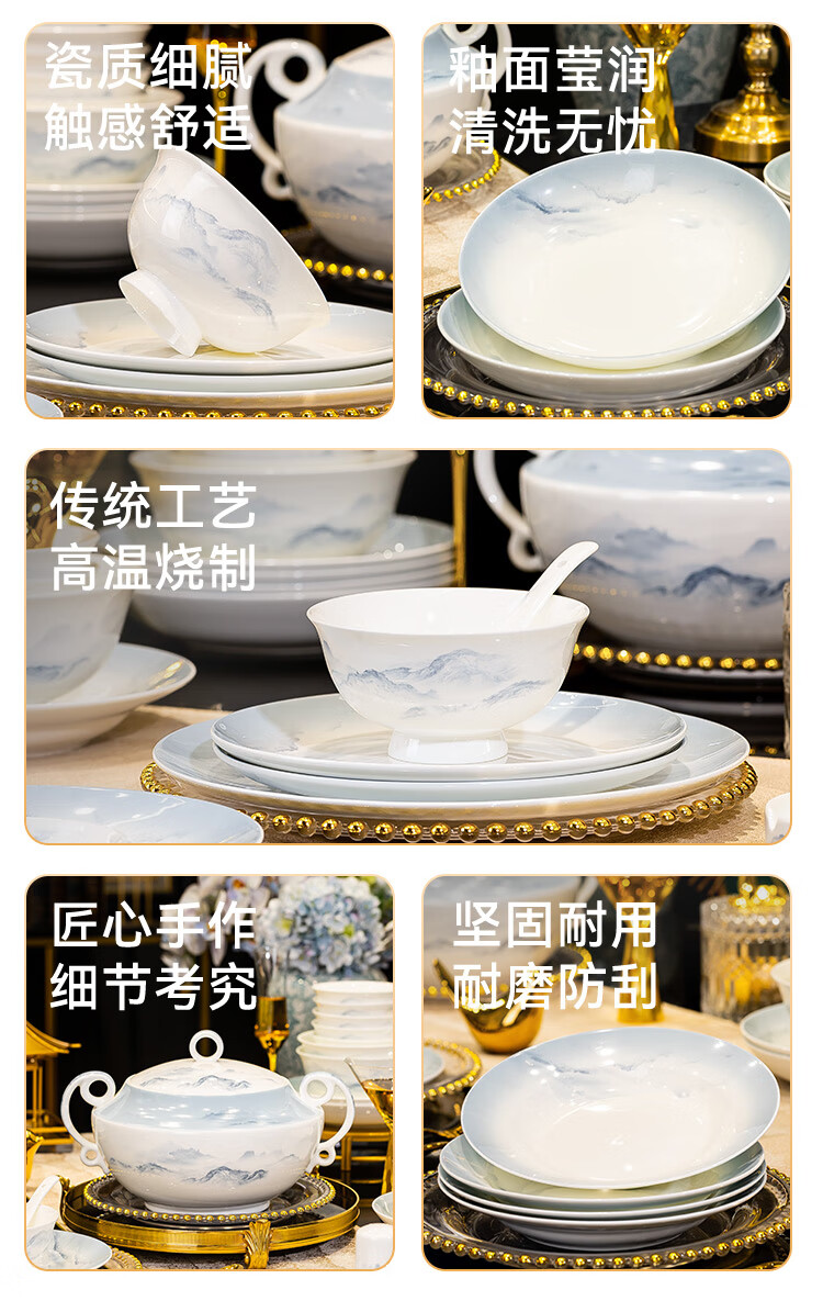 厨具  > 餐具  > 餐具套装  >  京东京造  >  京东京造 碗盘餐具整套 碗具碟子套装骨瓷餐具 礼盒装 78头云山宴餐具套装 JZ-3684/套