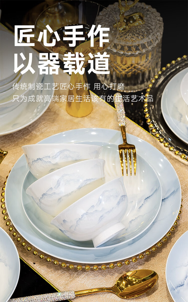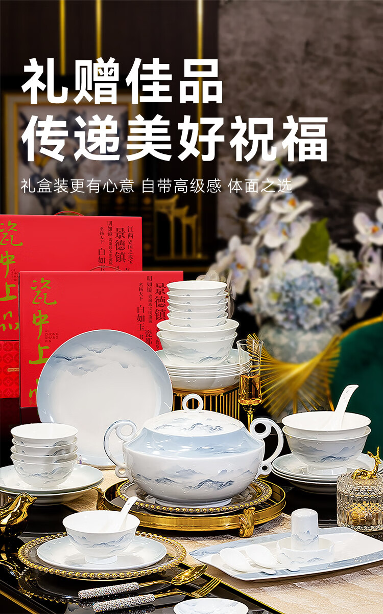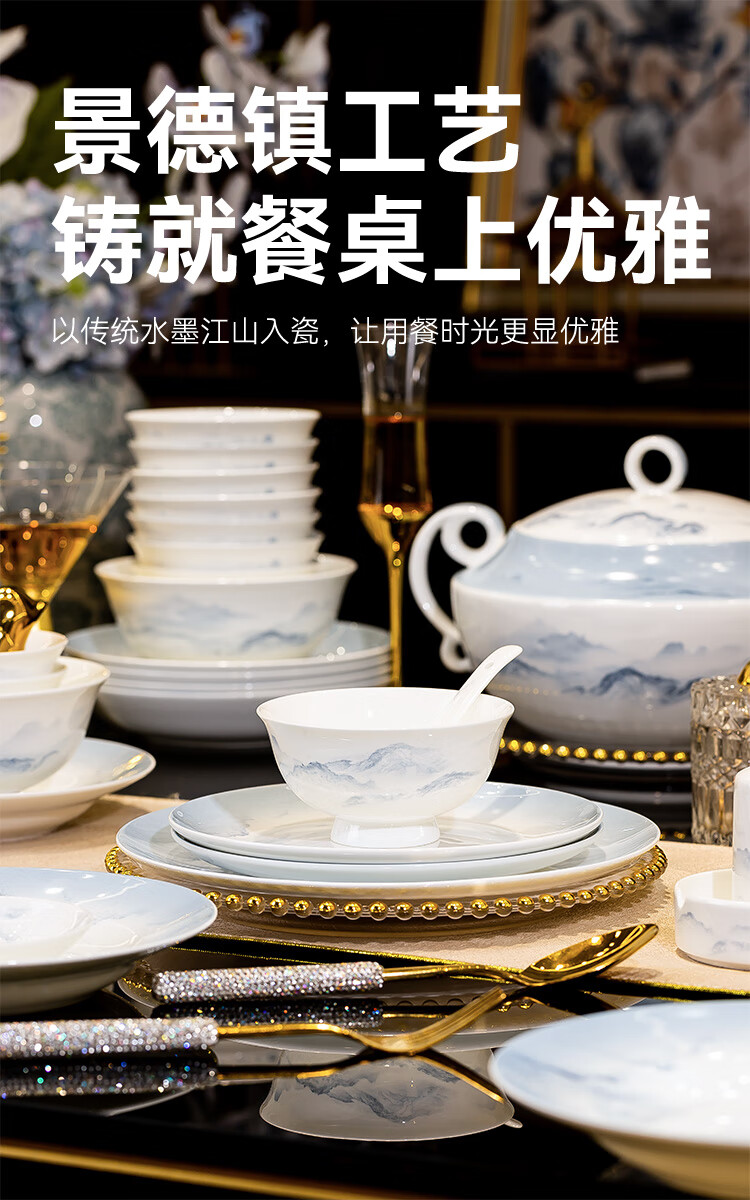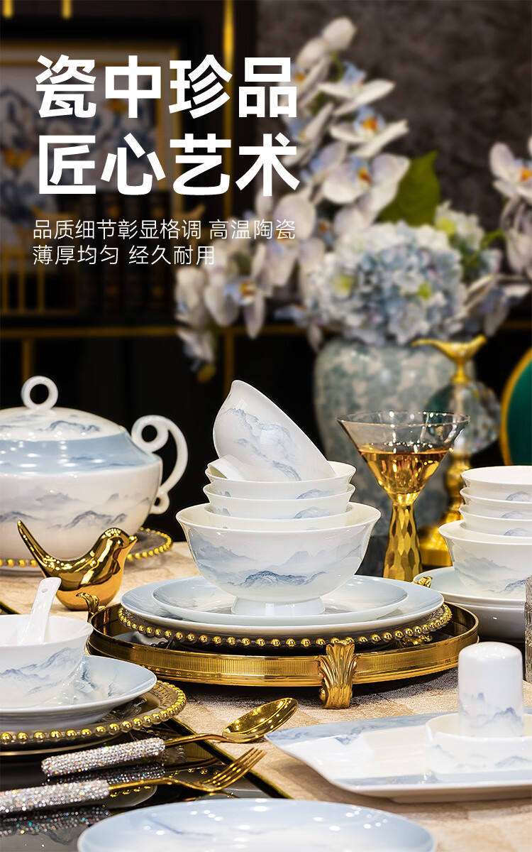 厨具  > 餐具  > 餐具套装  >  京东京造  >  京东京造 碗盘餐具整套 碗具碟子套装骨瓷餐具 礼盒装 78头云山宴餐具套装 JZ-3684/套