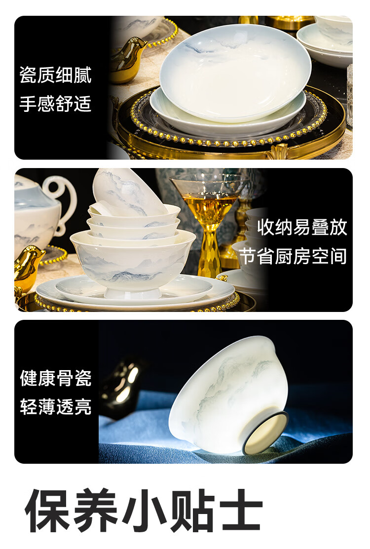 • 商品名称:京东京造 碗盘餐具整套 碗具碟子套装骨瓷餐具 礼盒装 78头云山宴餐具套装 JZ-3684/套