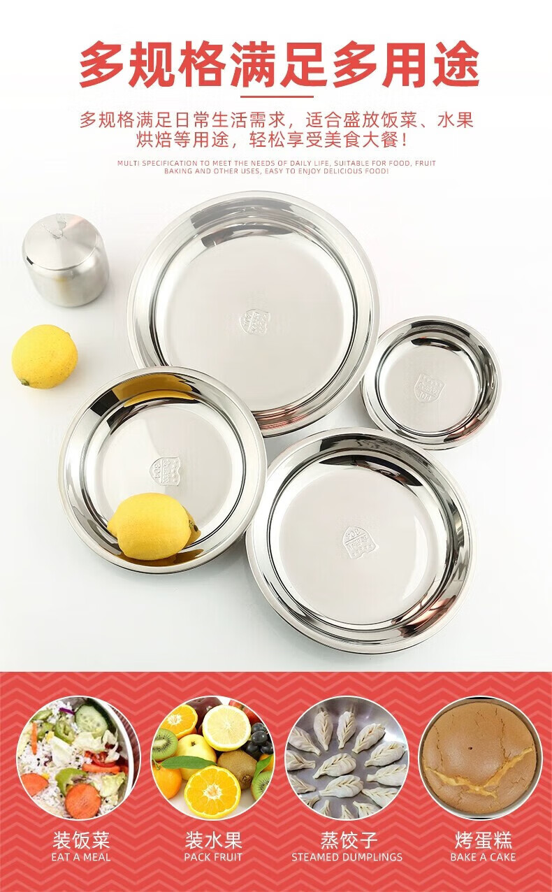 商品名称: 惠皇304不锈钢圆盘菜盘菜碟果盘蒸盘小碟子早餐盘调料碟 12cm可定制 早餐盘调料碟 12cm可定制/个