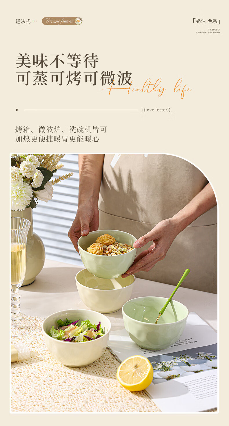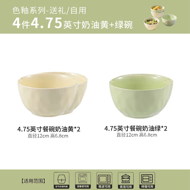 商品名称: 佩尔森奶油风米饭碗家用2025新款高颜值陶瓷吃饭碗盘餐具4.75英寸4只装 餐具套装/只