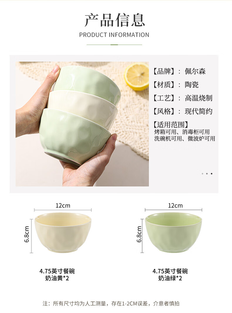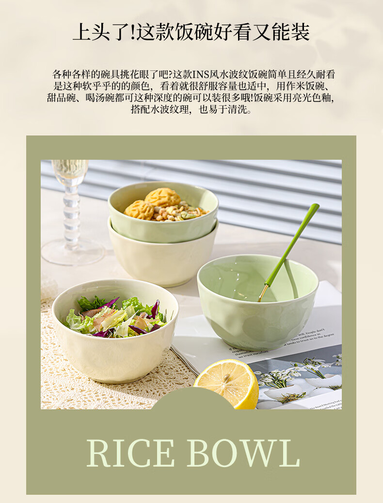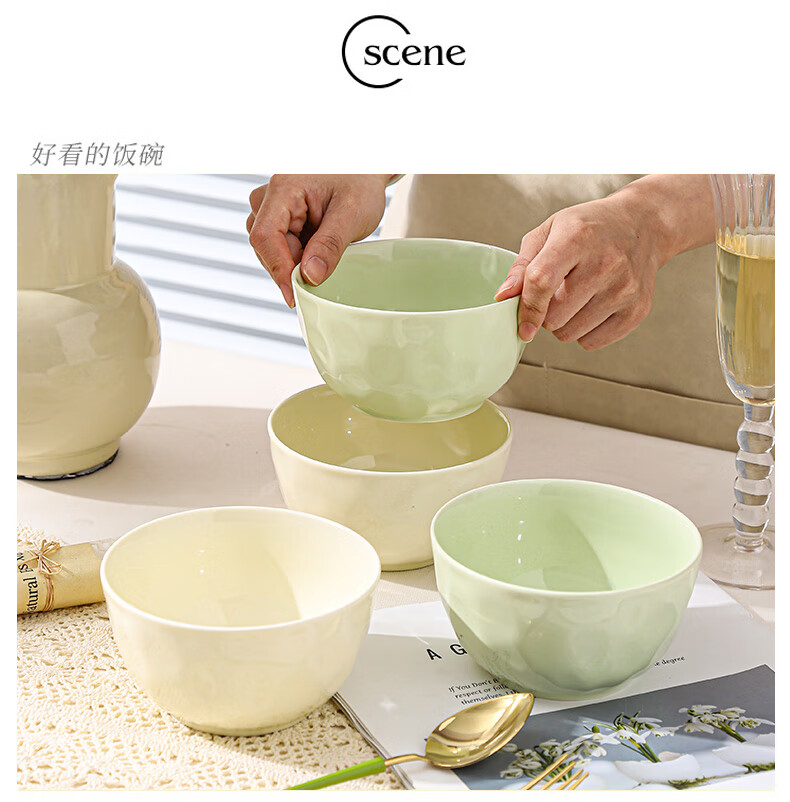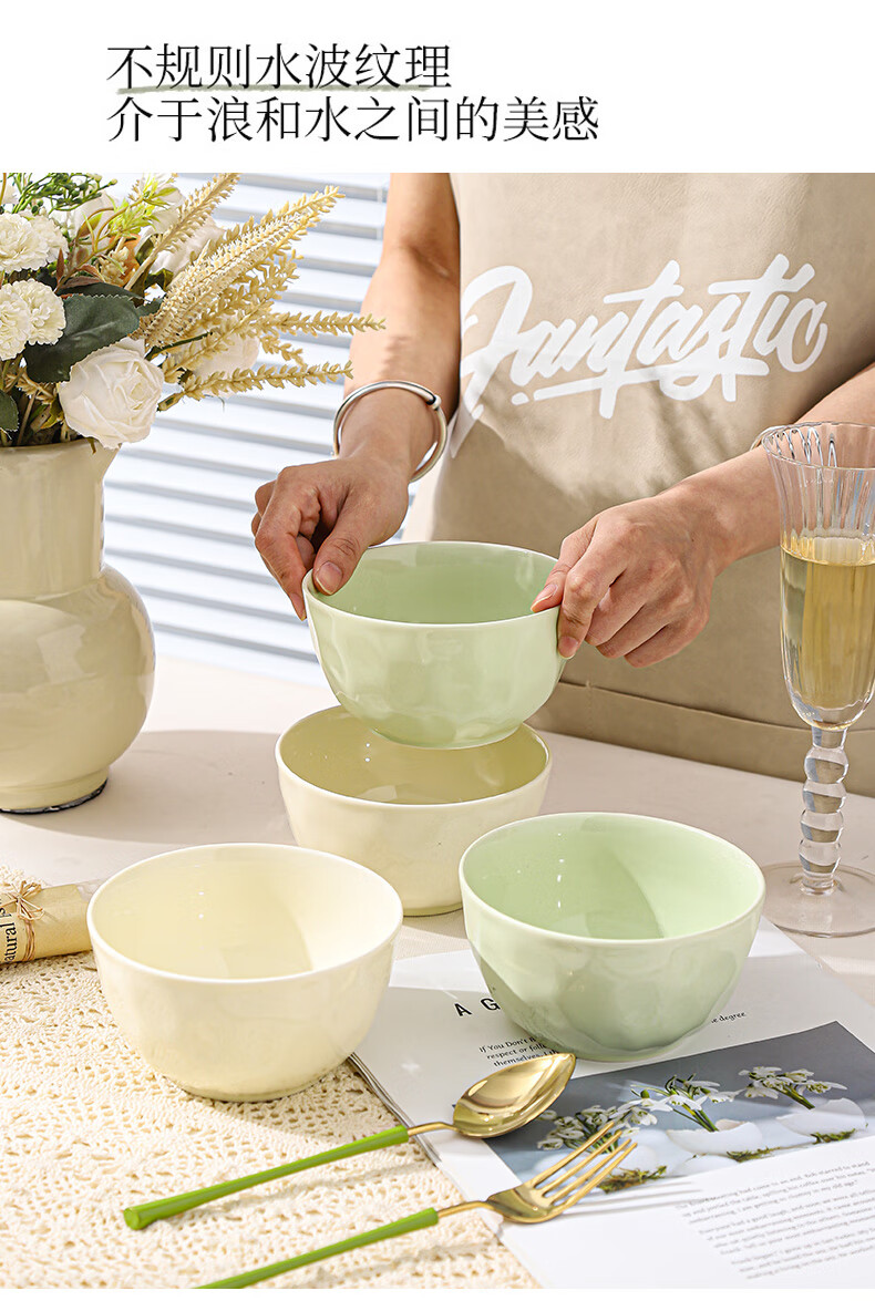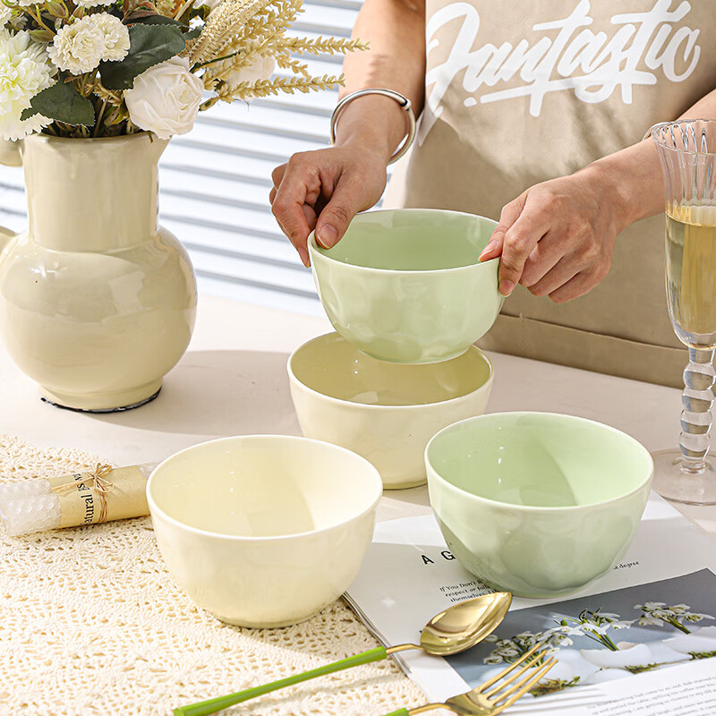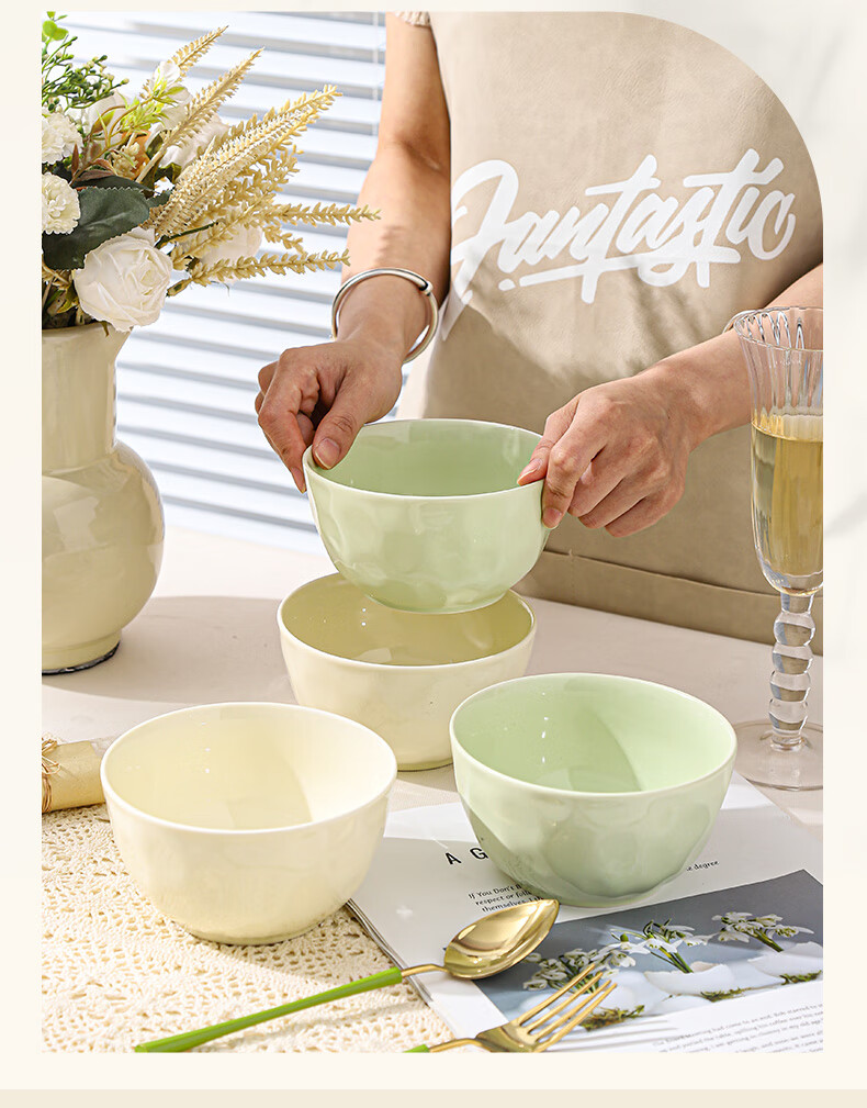 厨具  > 餐具  > 餐具套装  >  佩尔森/CERAMICS  >  佩尔森奶油风米饭碗家用2025新款高颜值陶瓷吃饭碗盘餐具4.75英寸4只装 餐具套装/只