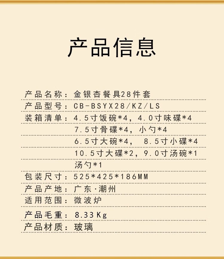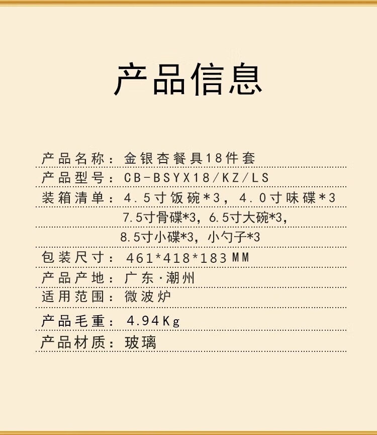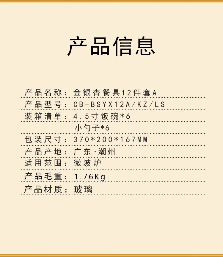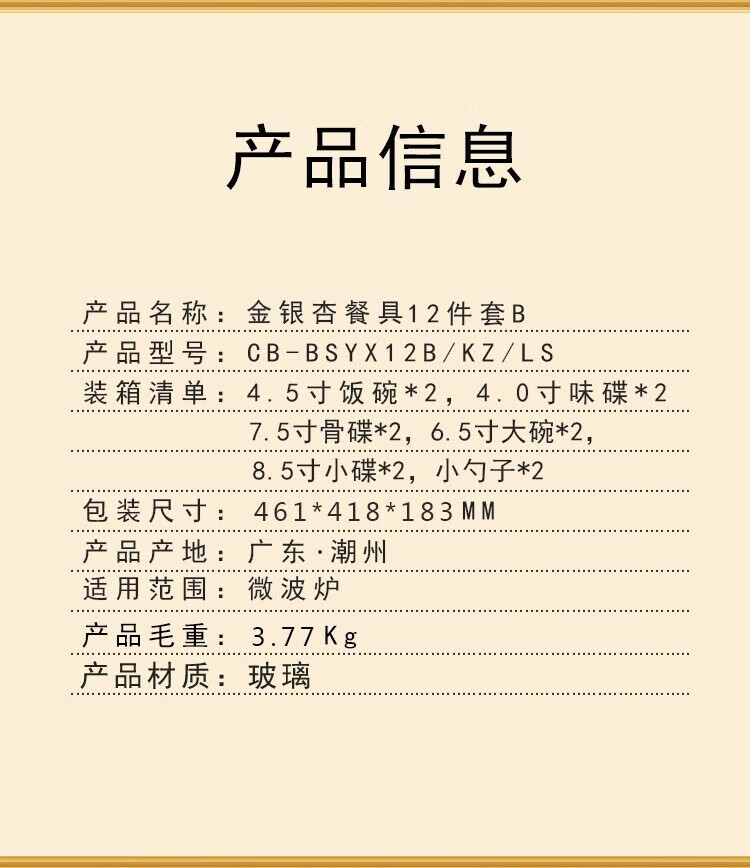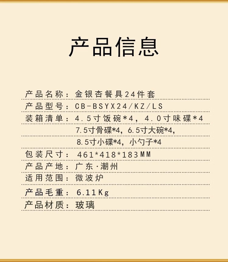 商品名称: 康宁餐具冰萃玲珑 金银杏餐具24件套CB-BSYX24/KZ/LS CB-BSYX24/KZ/LS/个