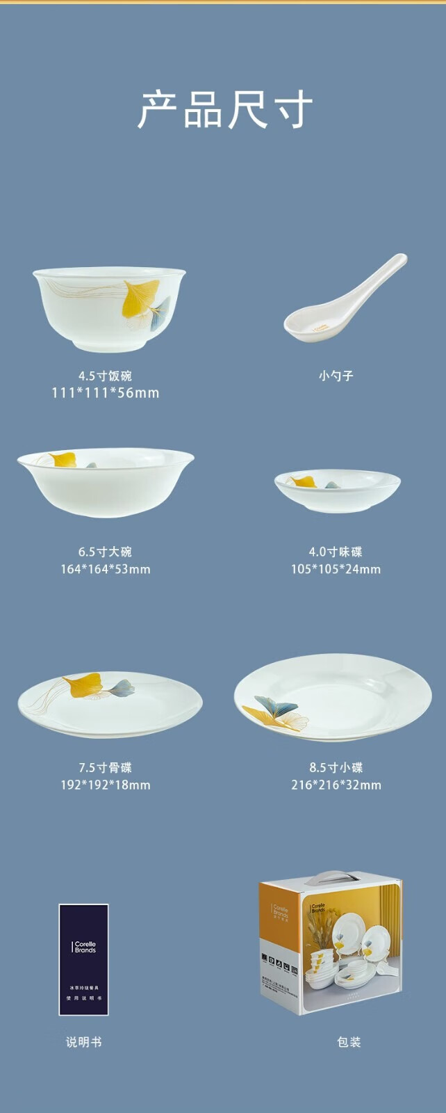 • 商品名称:康宁餐具冰萃玲珑 金银杏餐具24件套CB-BSYX24/KZ/LS CB-BSYX24/KZ/LS/个