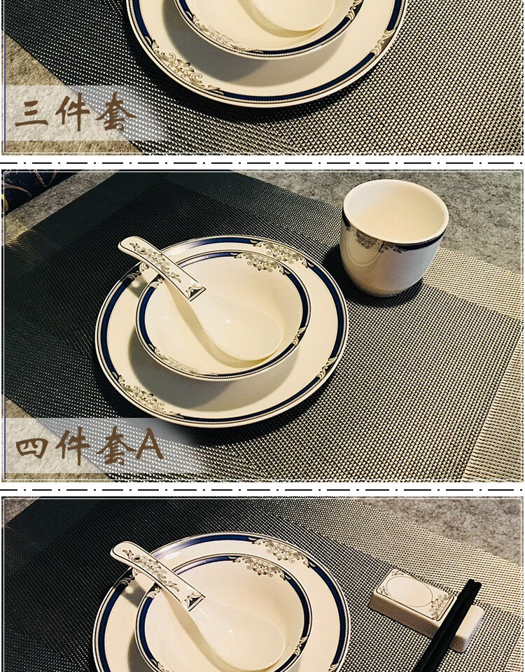 • 商品名称:惠皇酒店摆台餐具套装现代会所碗碟四件套可定制冠世蓝殿四件套b 冠世蓝殿 四件套b/个