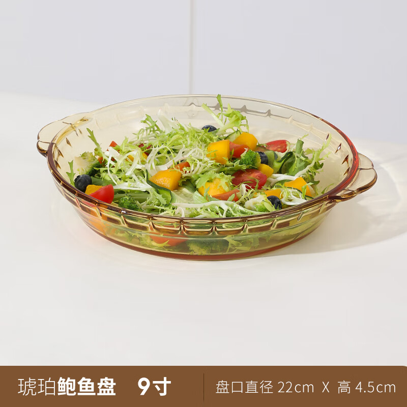 厨具  > 餐具  > 餐具套装  >  希乐扣Cilock  >  希乐扣Cilock耐热玻璃盘子家用蒸蛋菜盘果盘微波炉烤箱专用琥珀鲍鱼盘子 9英寸 琥珀鲍鱼盘9寸1只装/只