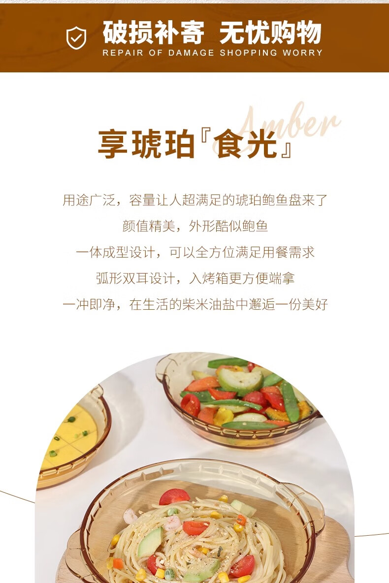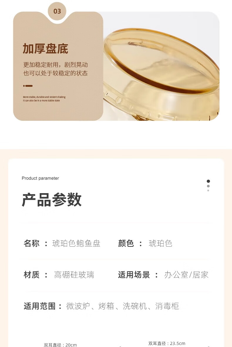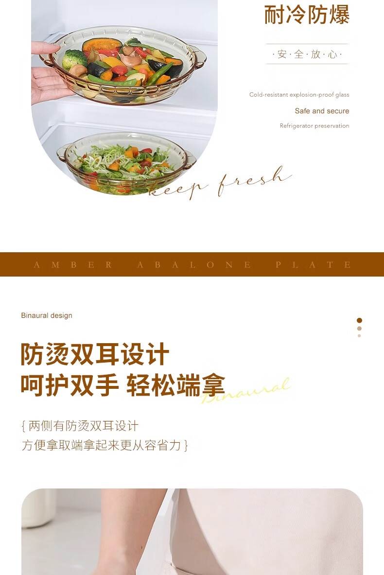 商品名称: 希乐扣Cilock耐热玻璃盘子家用蒸蛋菜盘果盘微波炉烤箱专用琥珀鲍鱼盘子 9英寸 琥珀鲍鱼盘9寸1只装/只