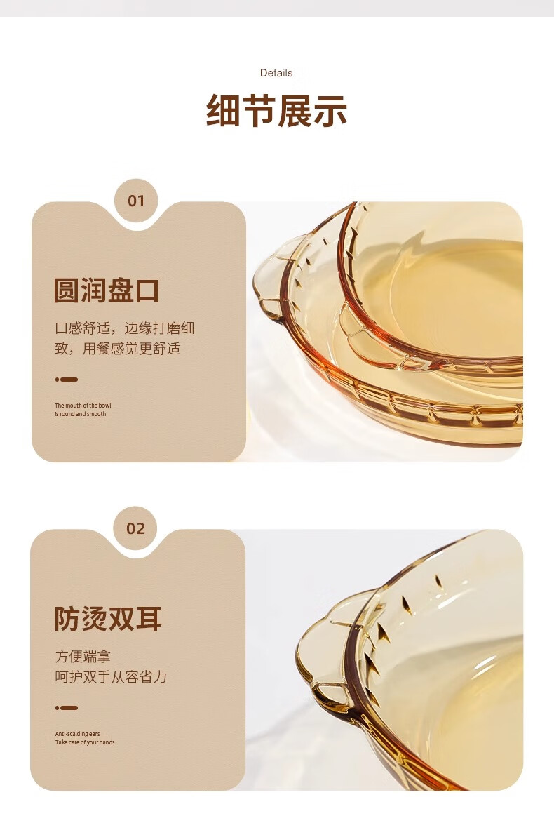 • 商品名称:希乐扣Cilock耐热玻璃盘子家用蒸蛋菜盘果盘微波炉烤箱专用琥珀鲍鱼盘子 9英寸 琥珀鲍鱼盘9寸1只装/只