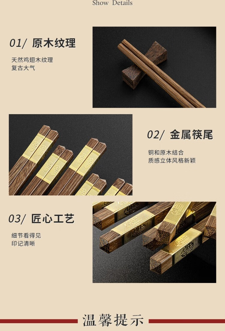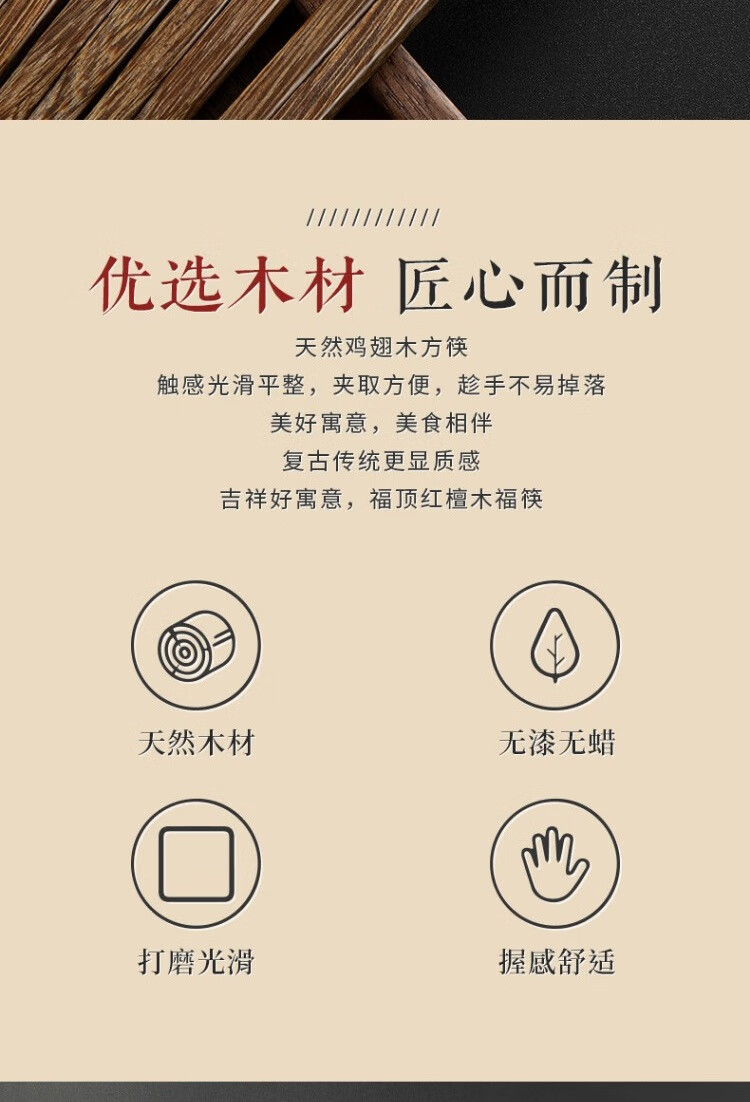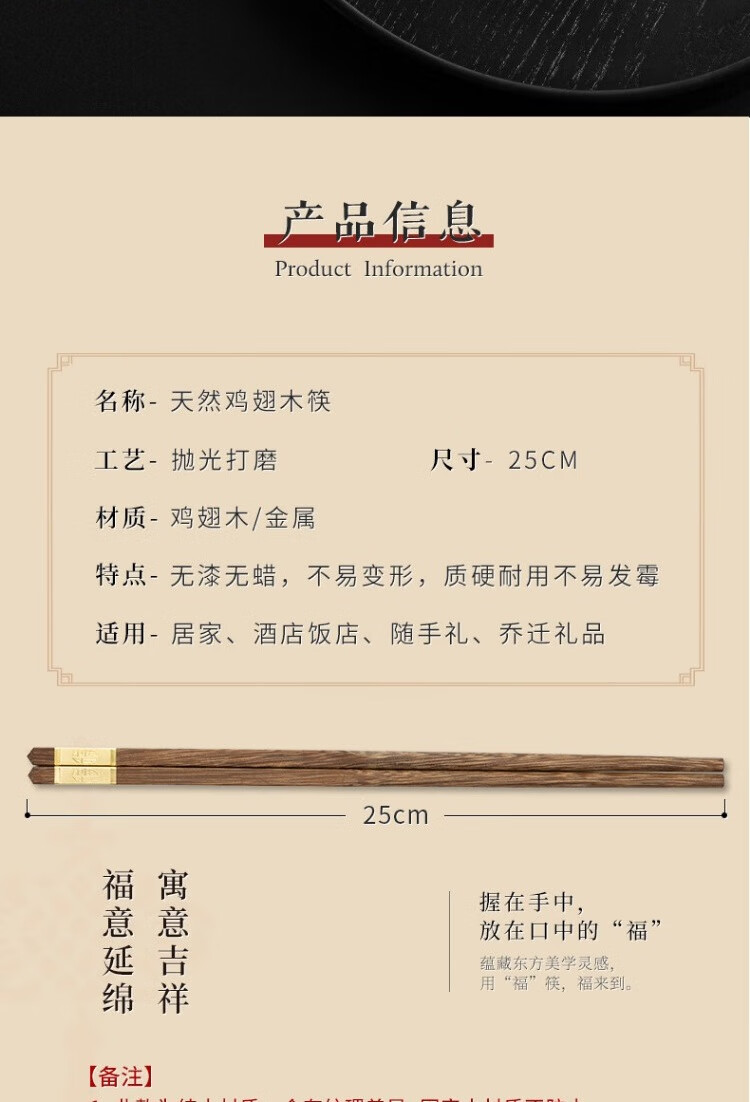 • 商品名称:爱之旅高档筷子家用鸡翅木筷实木 20双装/包 高档筷子/包