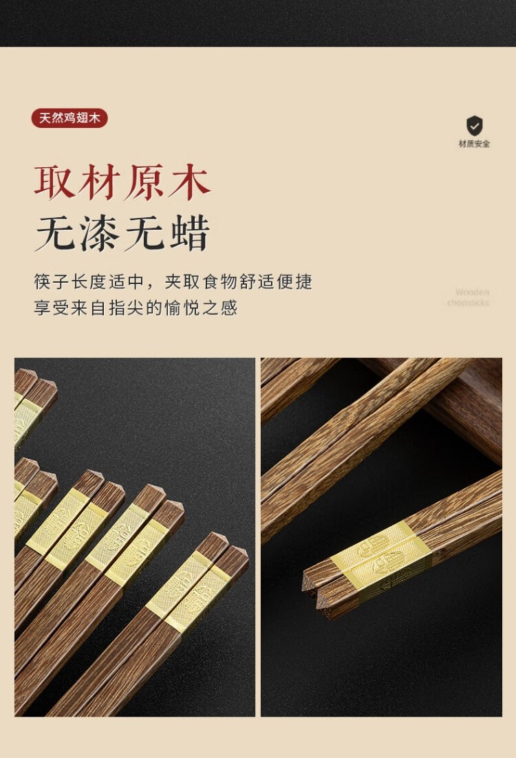 爱之旅高档筷子家用鸡翅木筷实木 20双装/包 高档筷子/包