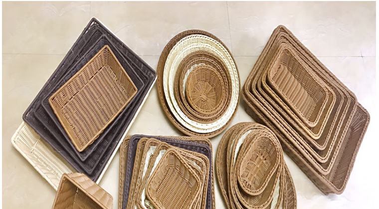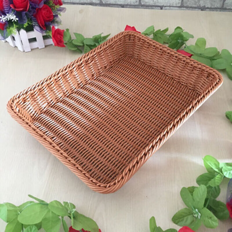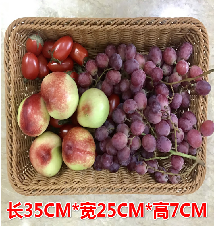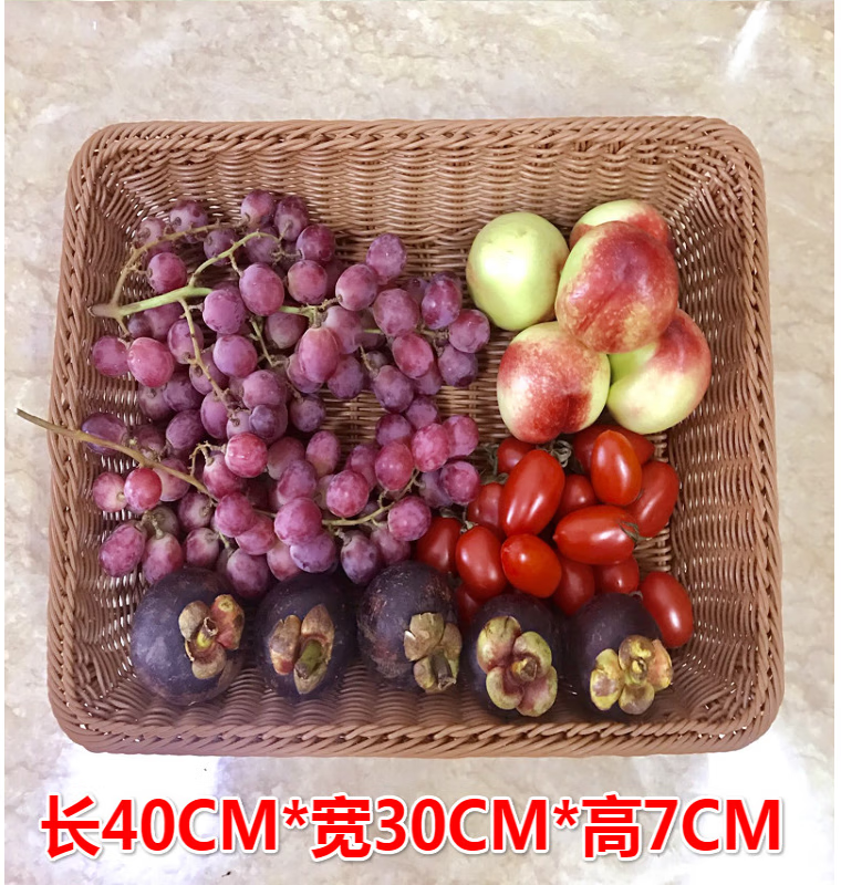 商品名称: 蔚毅 仿藤水果篮藤编篮长方形蔬菜篮子收纳筐 茶色40*30*7 2个装 茶色40*30*7 2个装/个