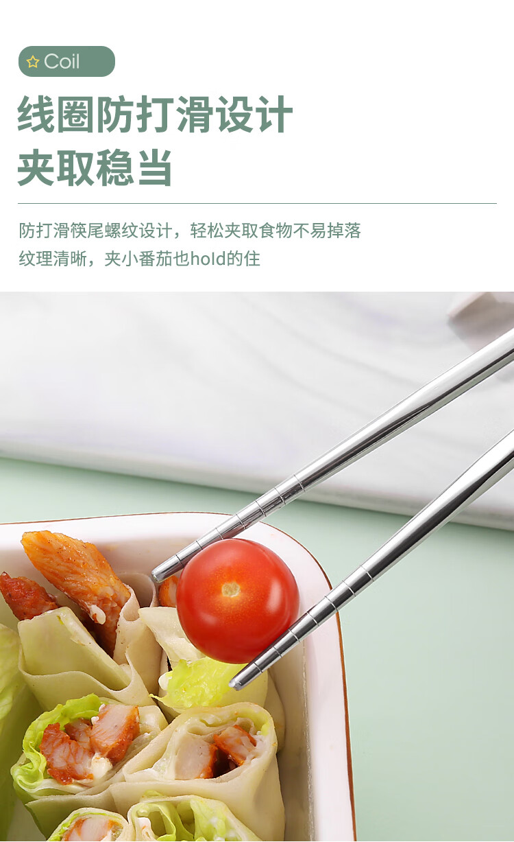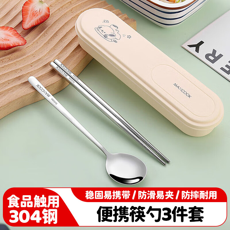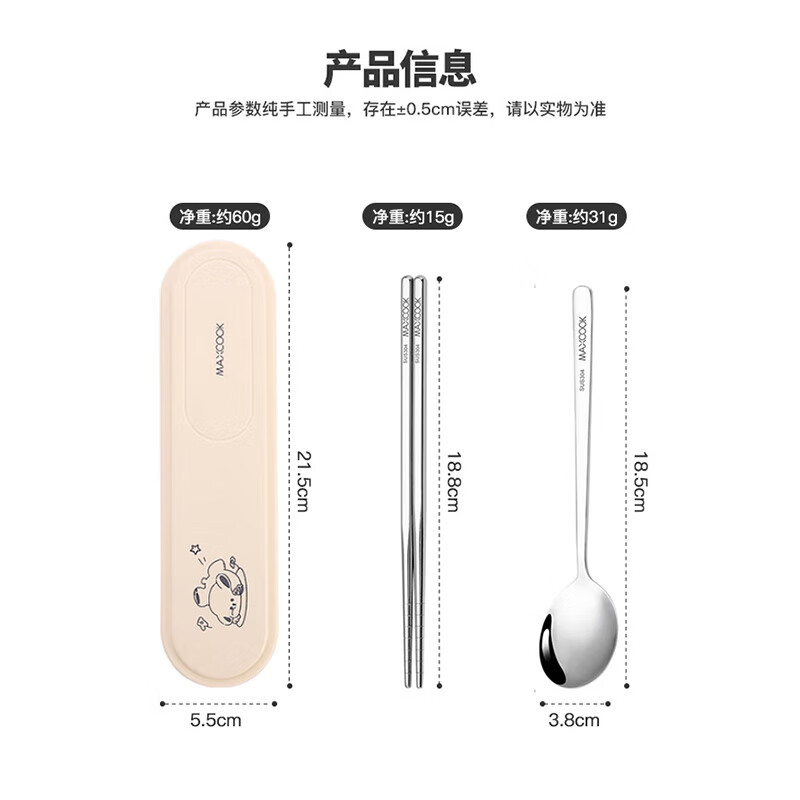 美厨(maxcook)304不锈钢筷子勺子餐具套装 便携式筷勺三件套 奶油白MCGC0598 304不锈钢便携筷勺/个