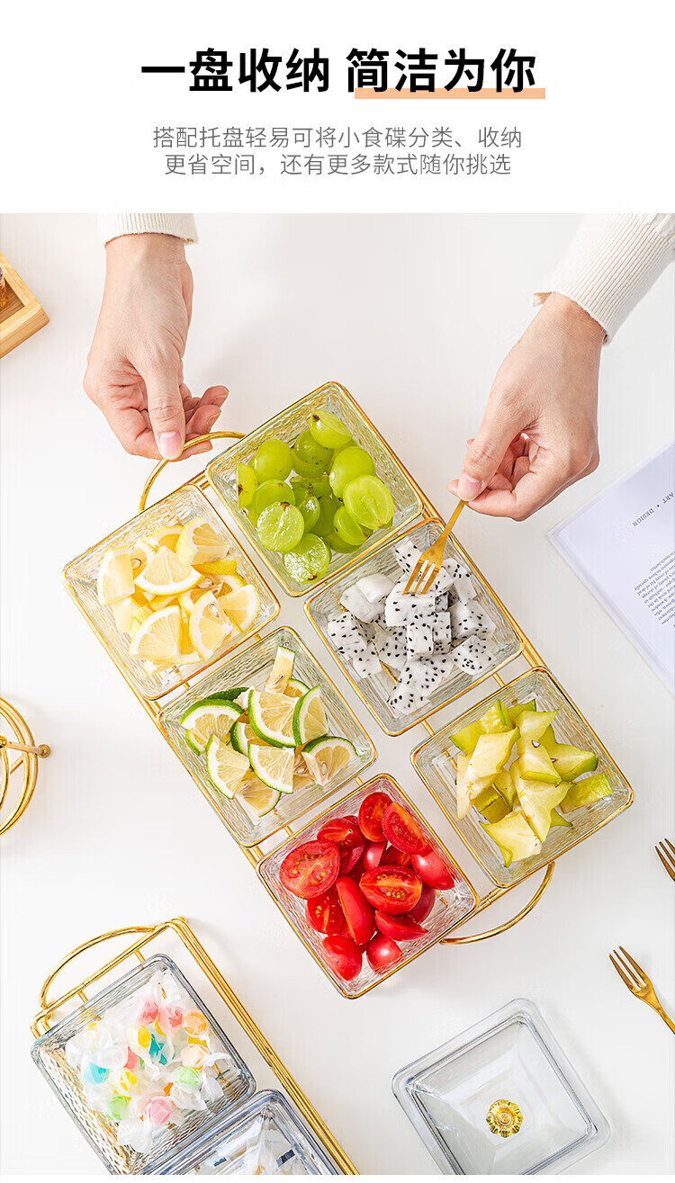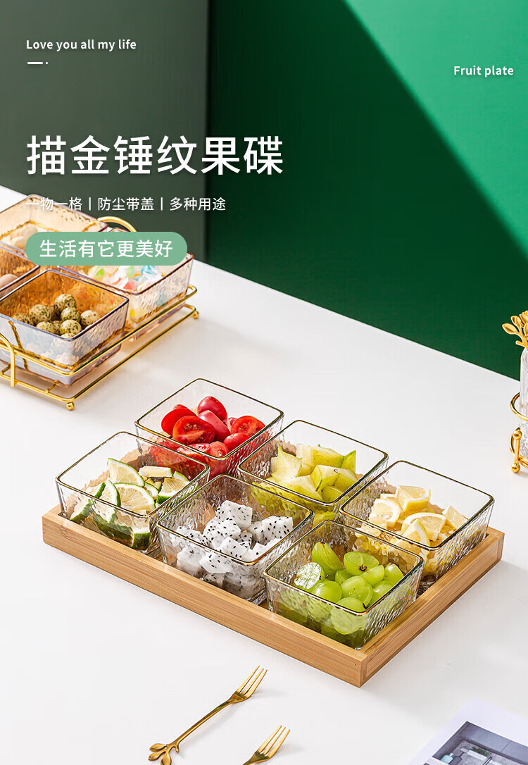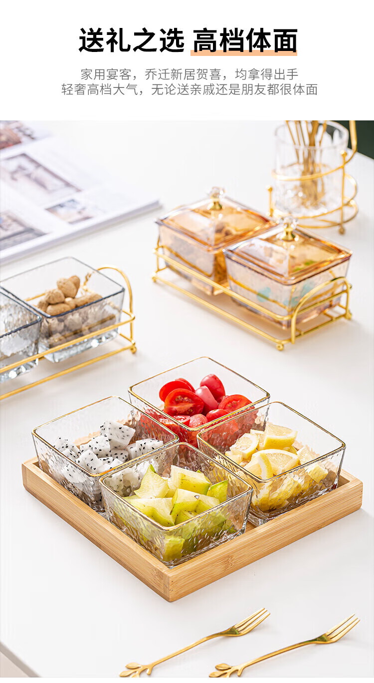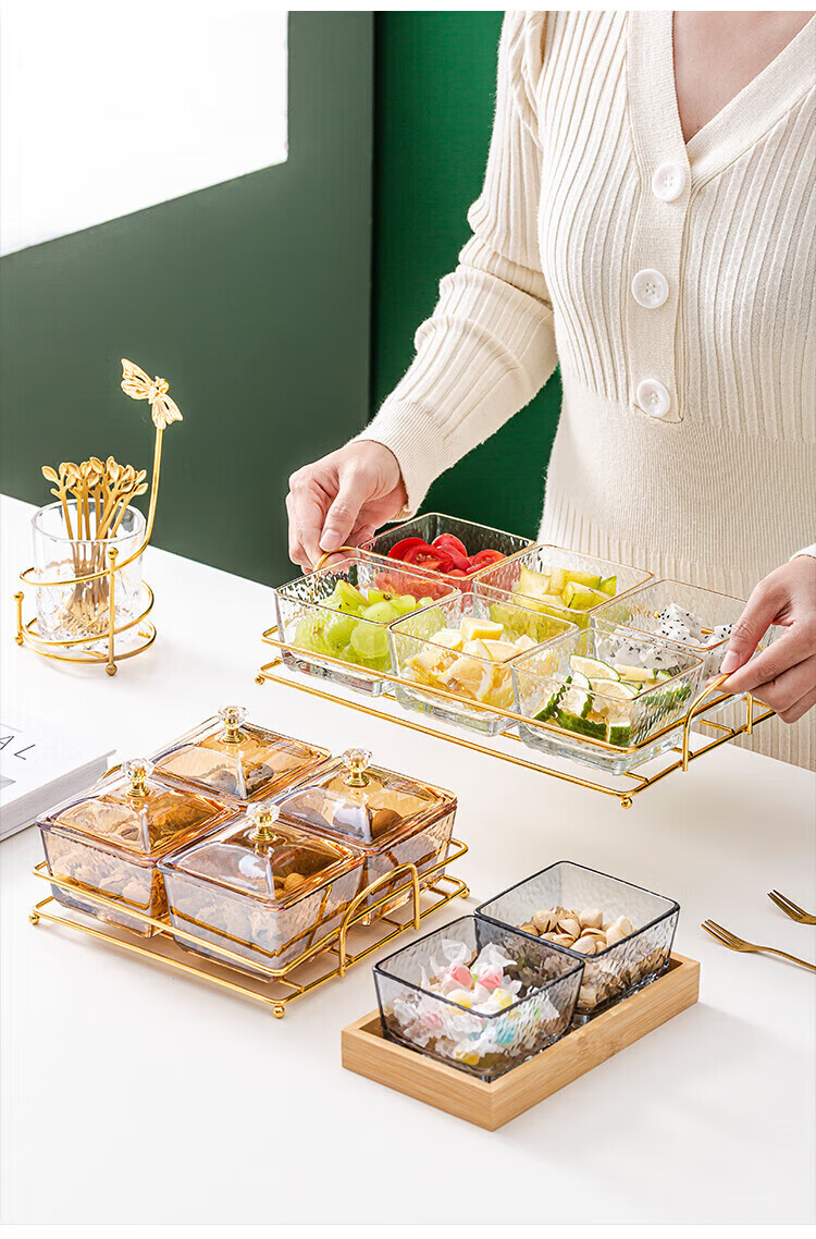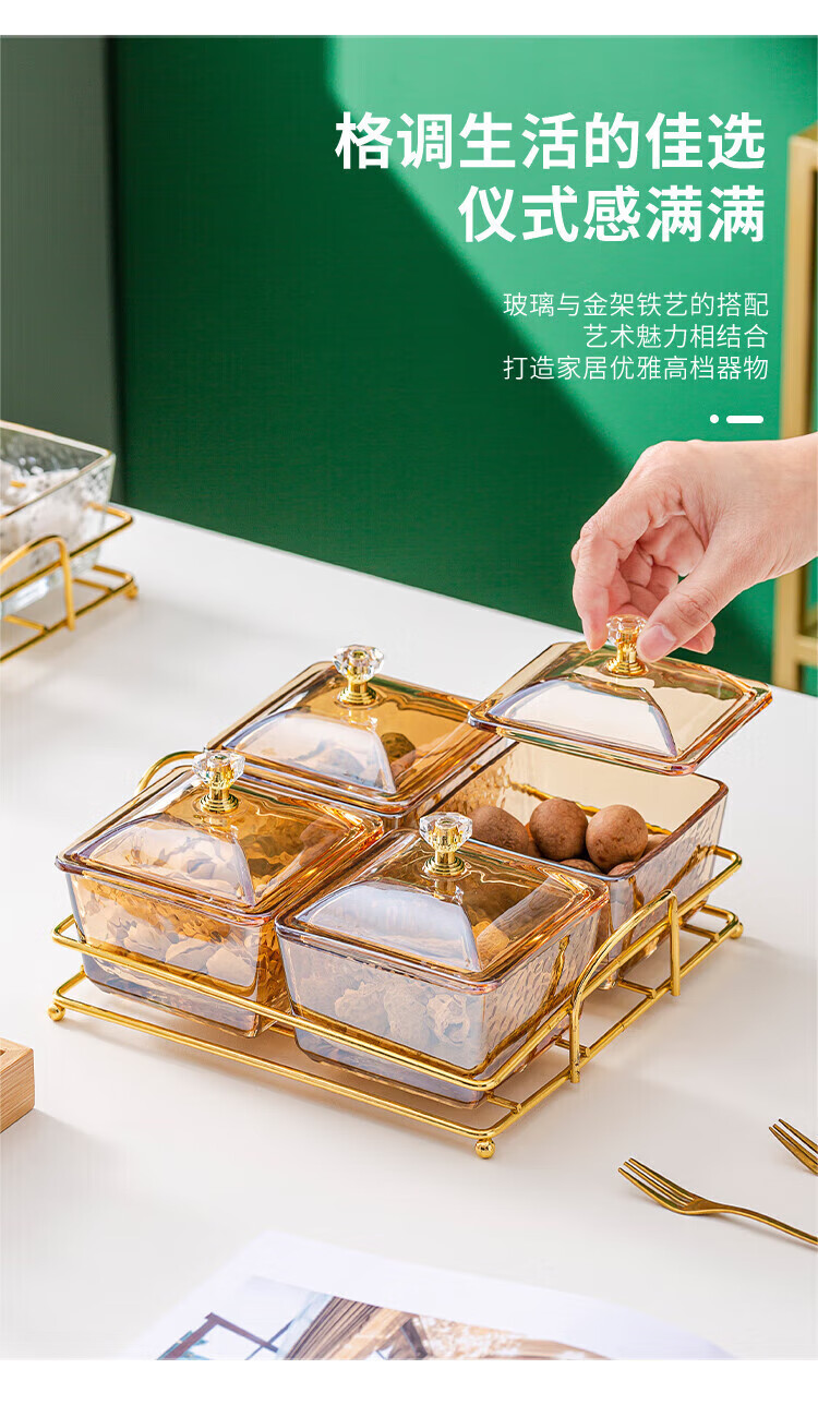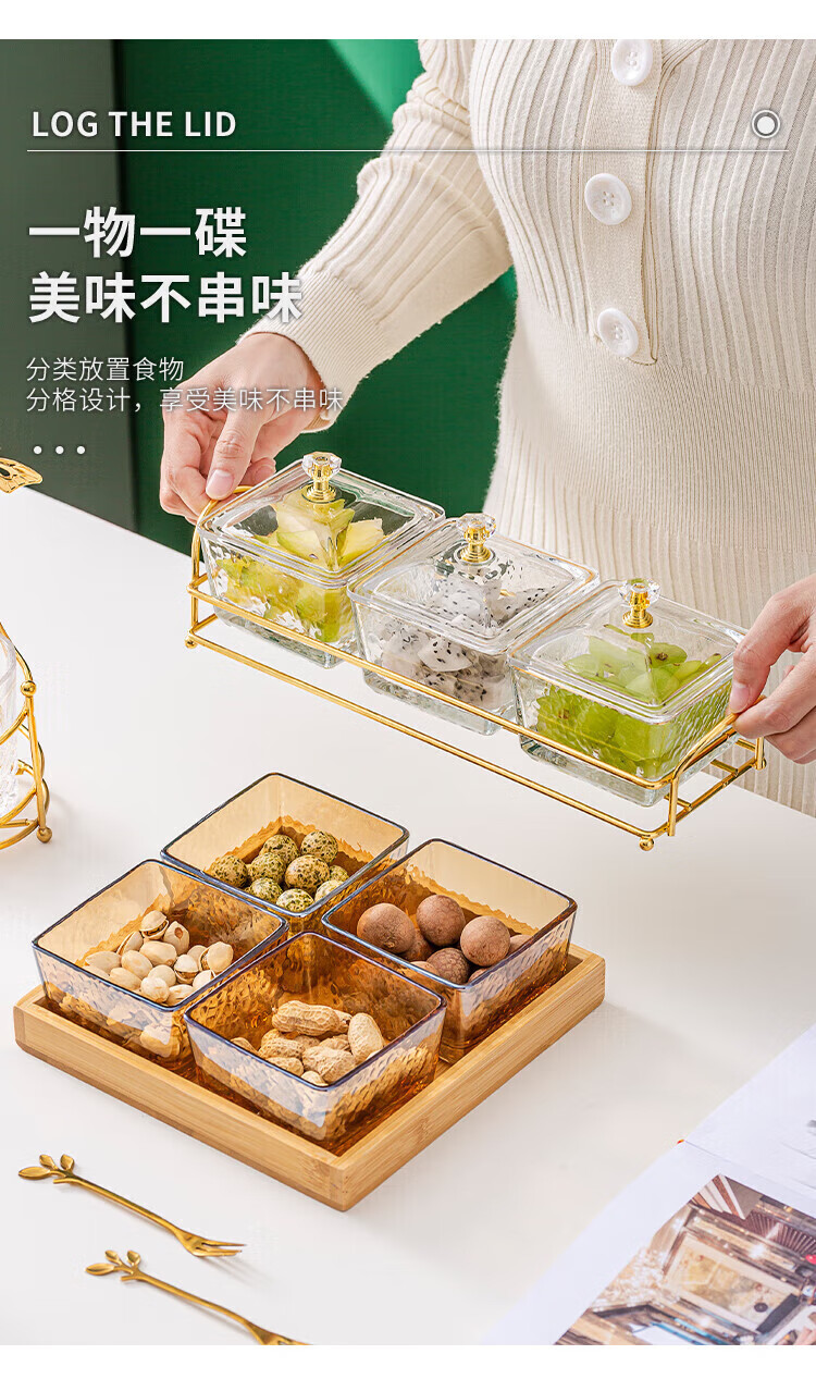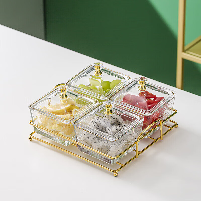 • 商品名称:惠皇玻璃分隔点心碟水果盘KTV格碟带盖可定制 锤纹金边四格+金架+盖子 可定制 锤纹金边四格+金架+盖子/个