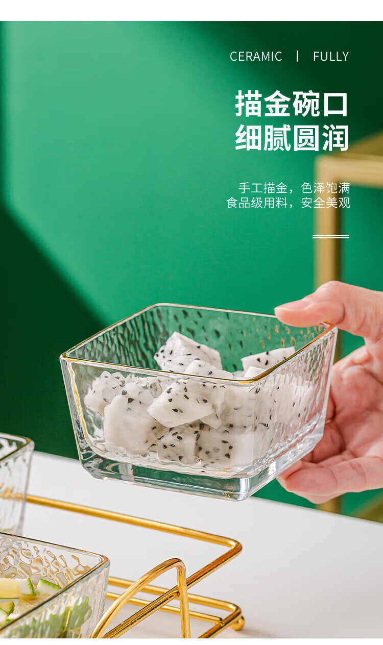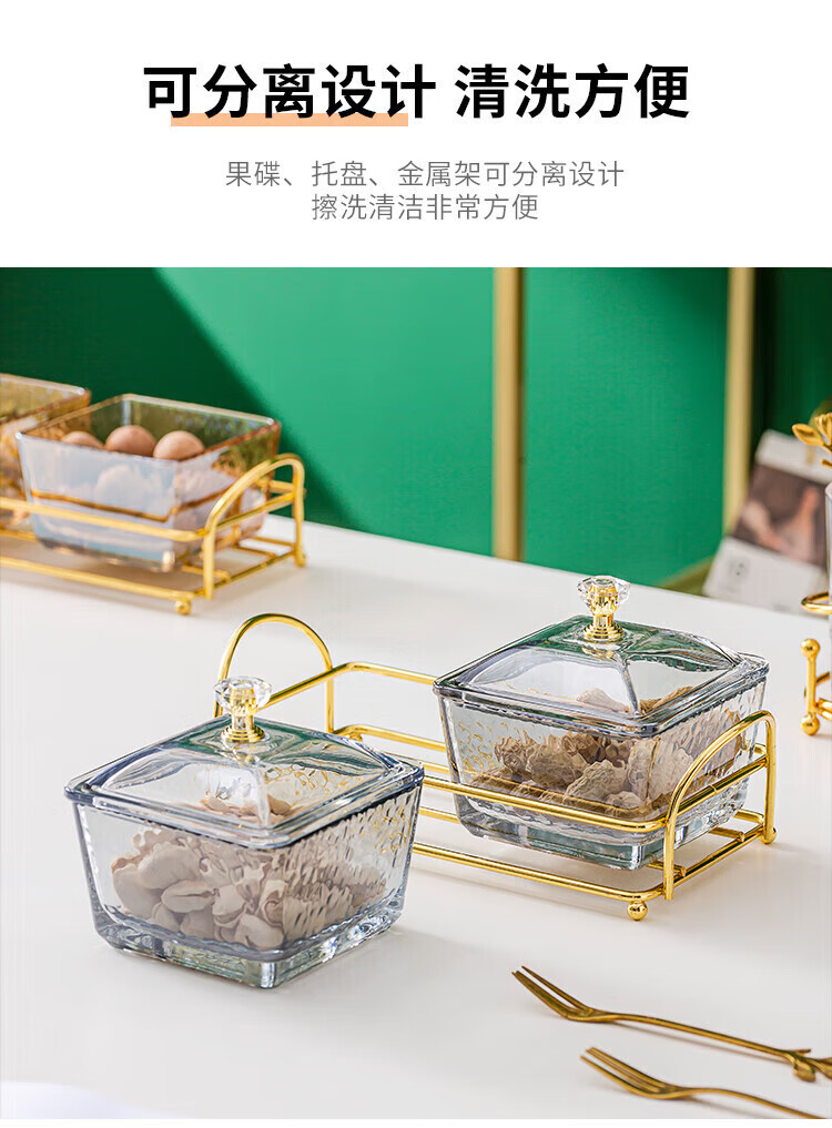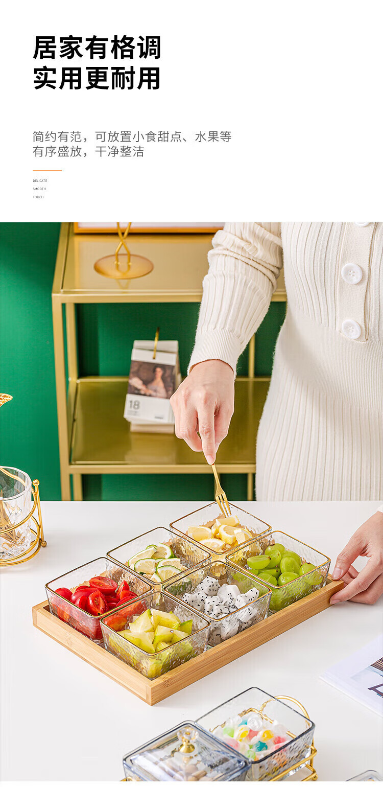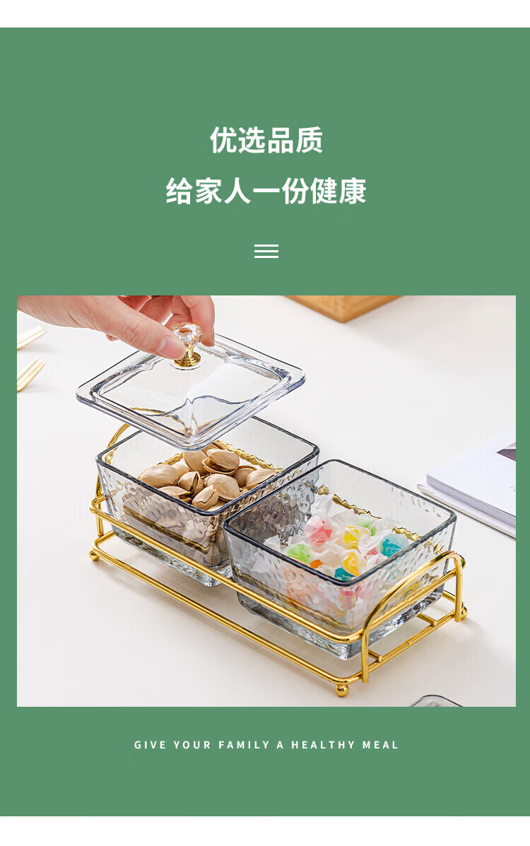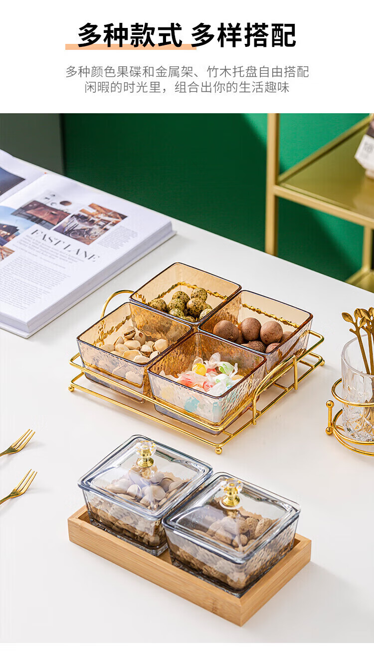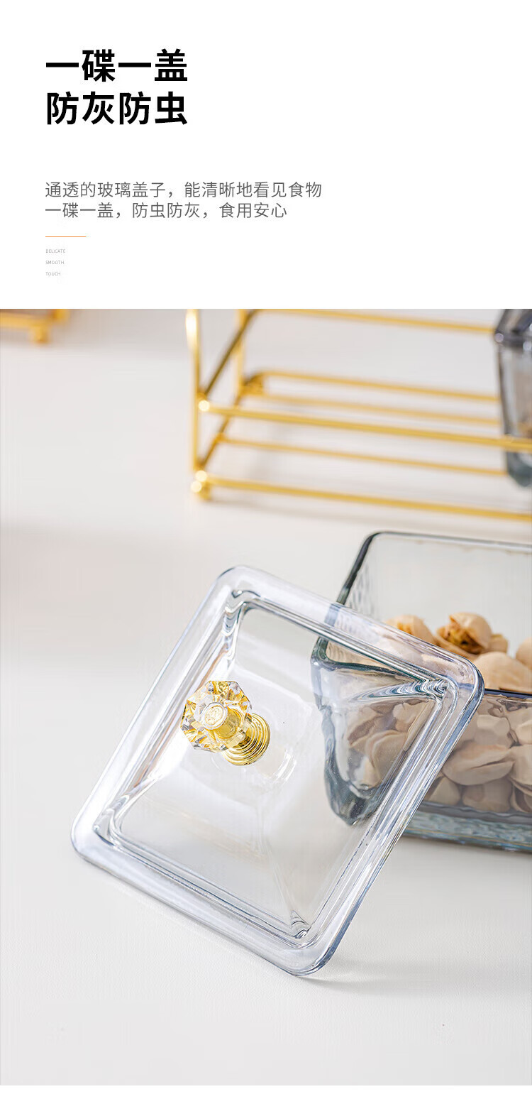 • 商品名称:惠皇玻璃分隔点心碟水果盘KTV格碟带盖可定制 锤纹金边四格+金架+盖子 可定制 锤纹金边四格+金架+盖子/个